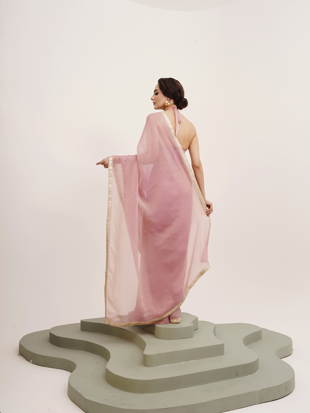 Pink Color Beautiful Partywear Sequinned Chiffon Saree