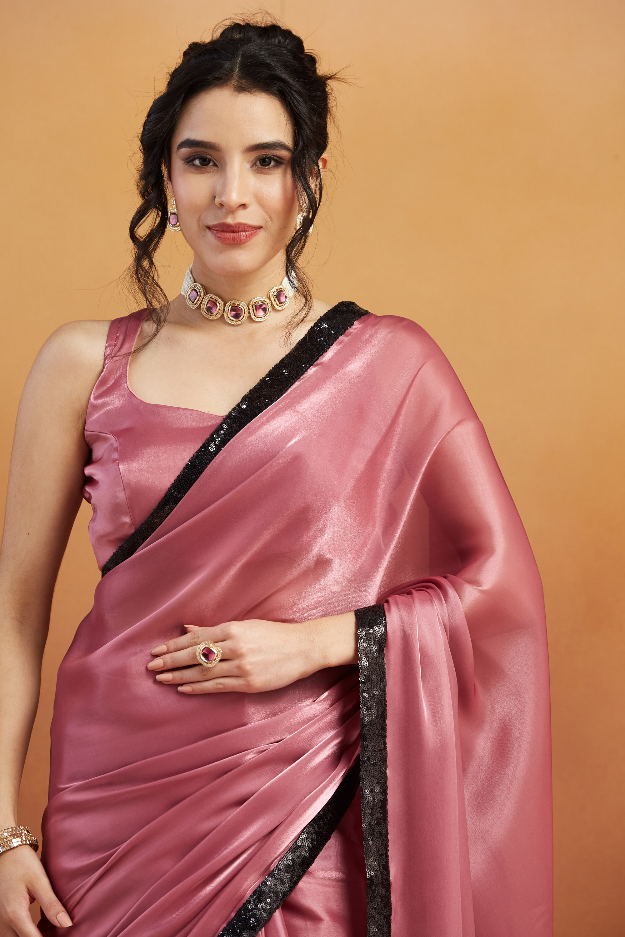 Pink Color Beautiful Velvet Fabric Ceremonial Wear Bollywood Saree