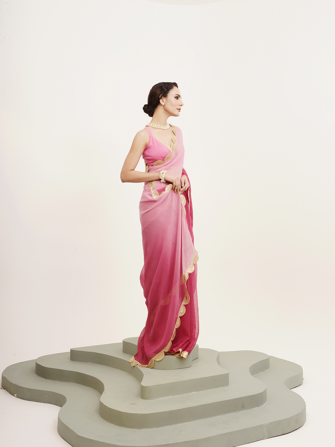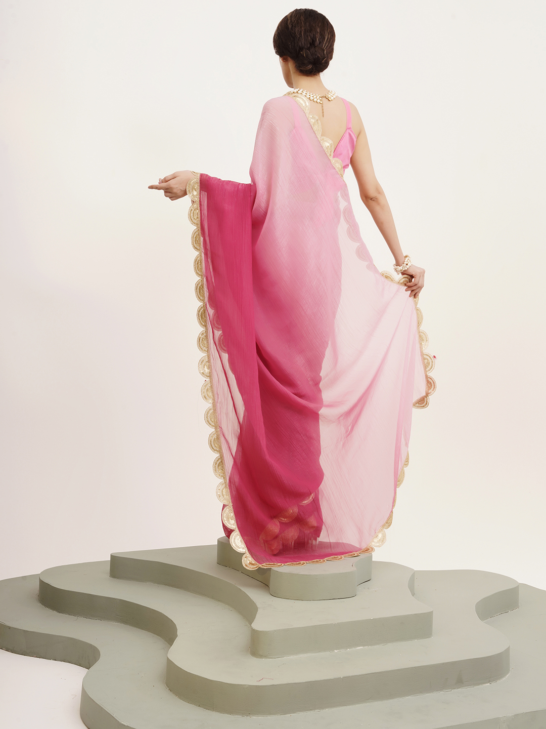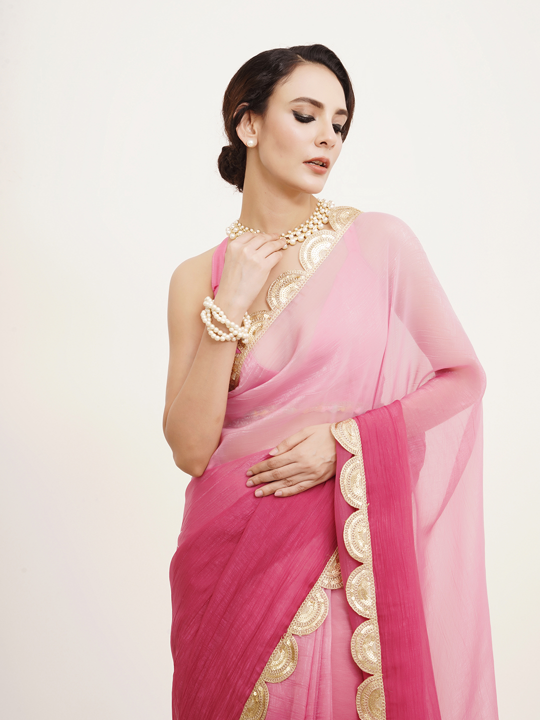 Pink Color Embellished Sequinned Chiffon Saree For Beautiful Partywear Saree