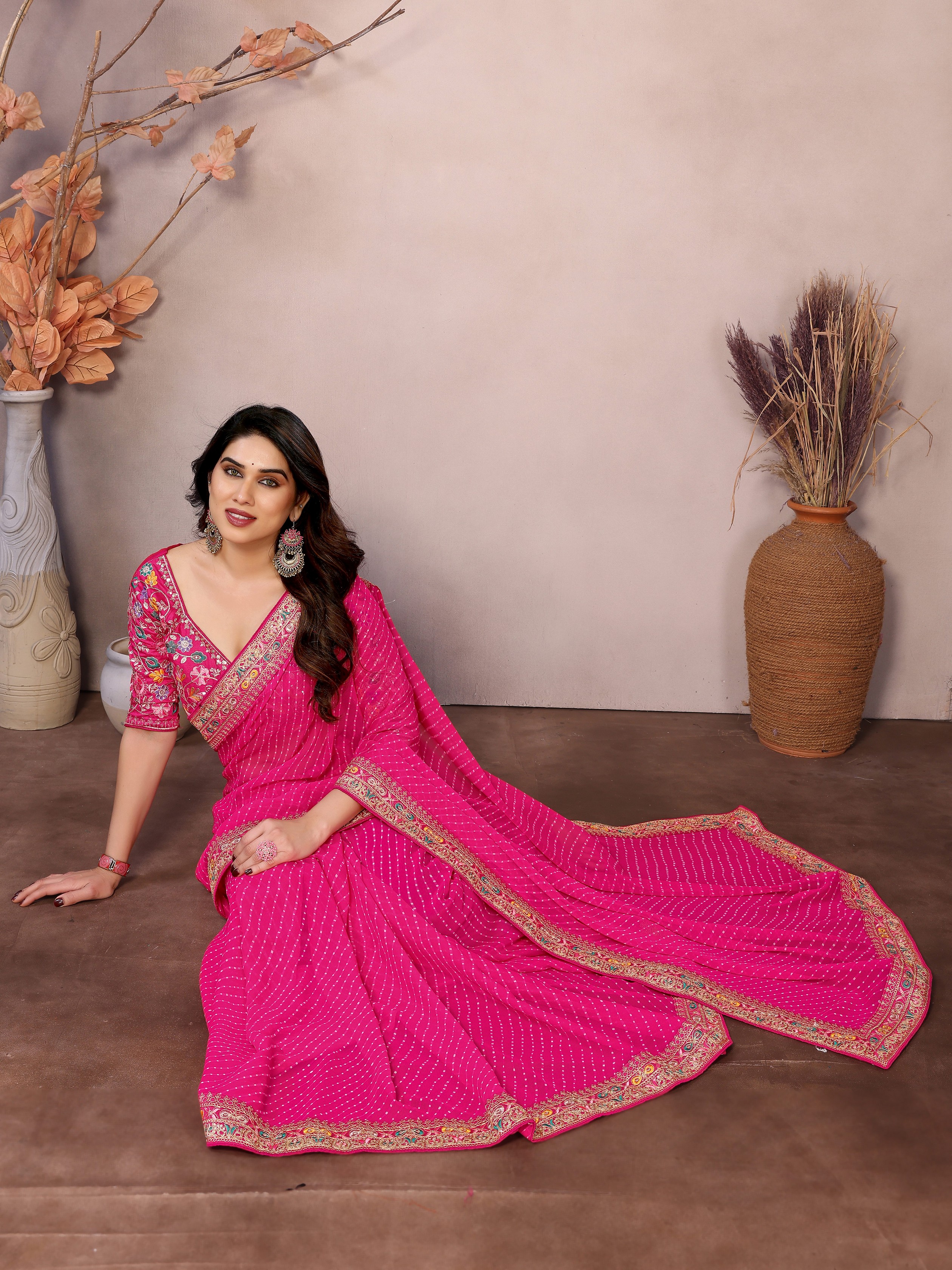 Pink Color Georgette Fabric Designer Embroidered Traditional Leheria Saree