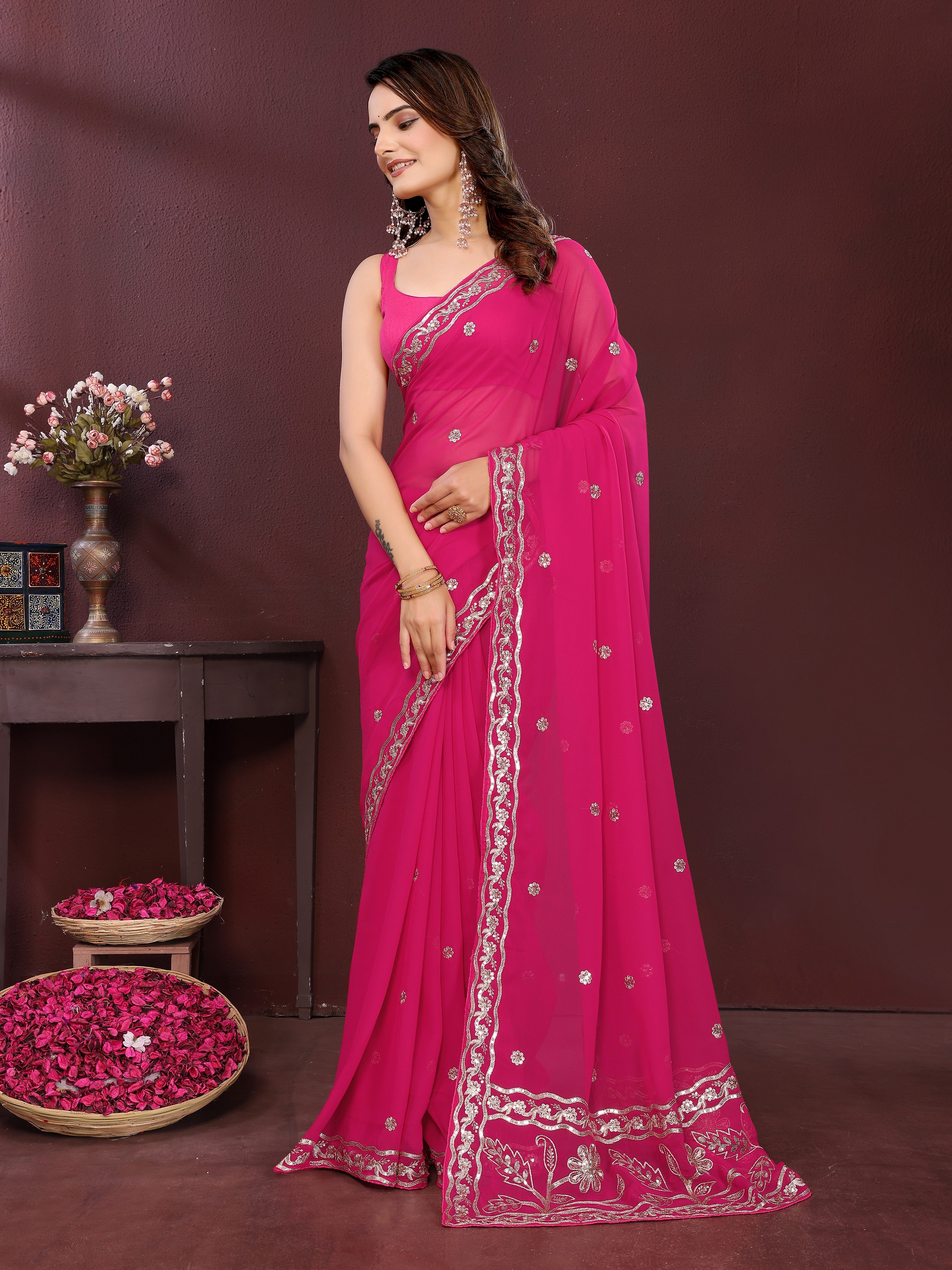Pink Color Georgette fabric Designer Embroidery Work Ethnic Partywear Saree