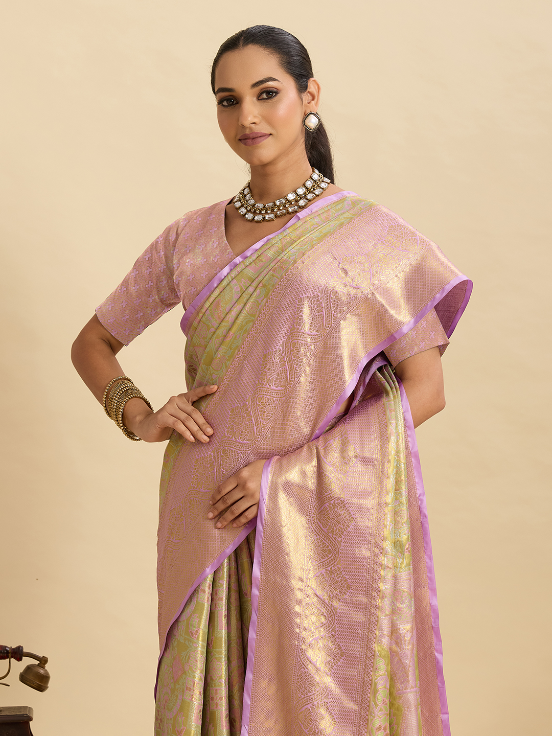 Pink Color Graceful Wevon Jari Designer Silk Blended Partywear Saree