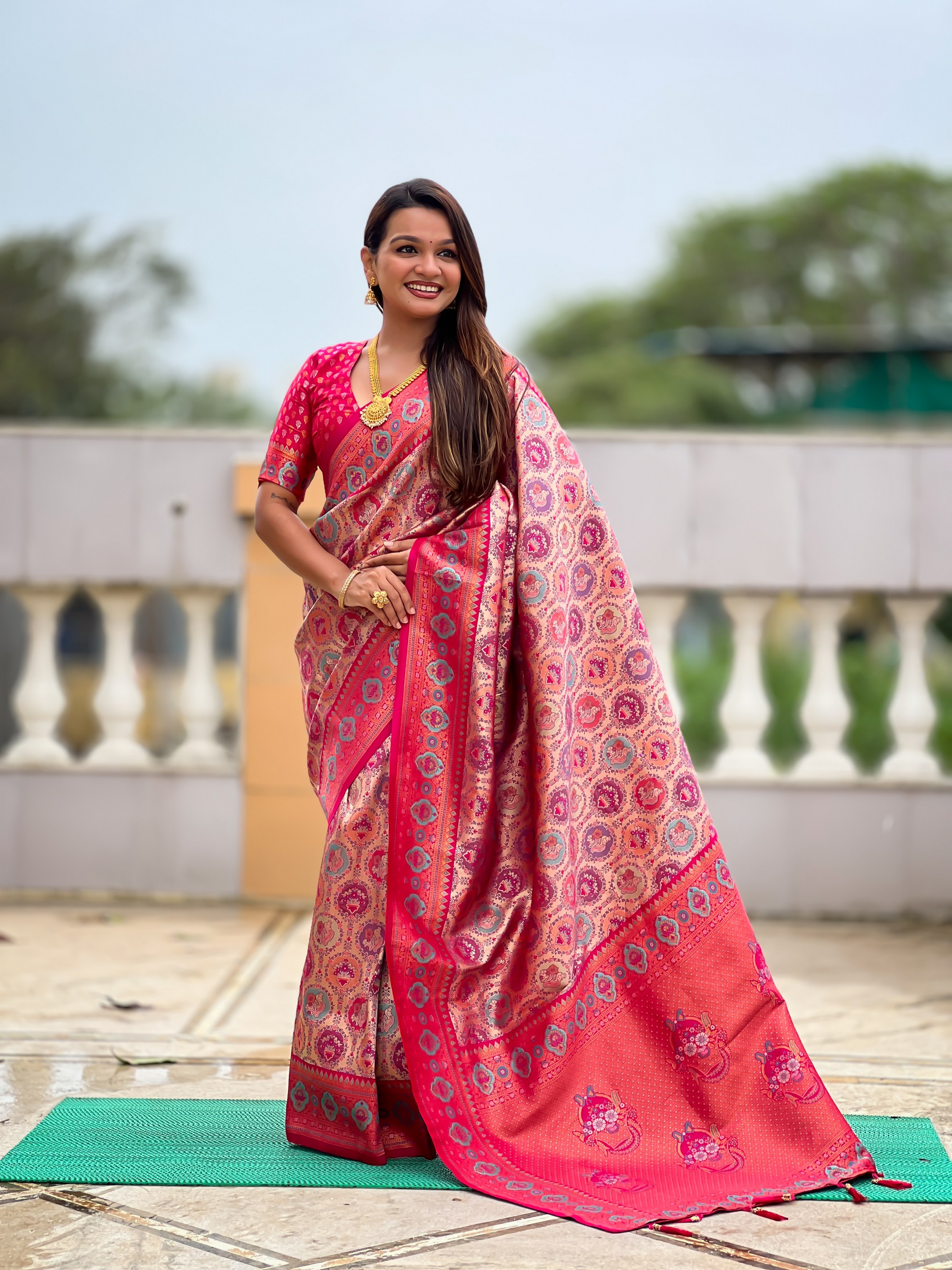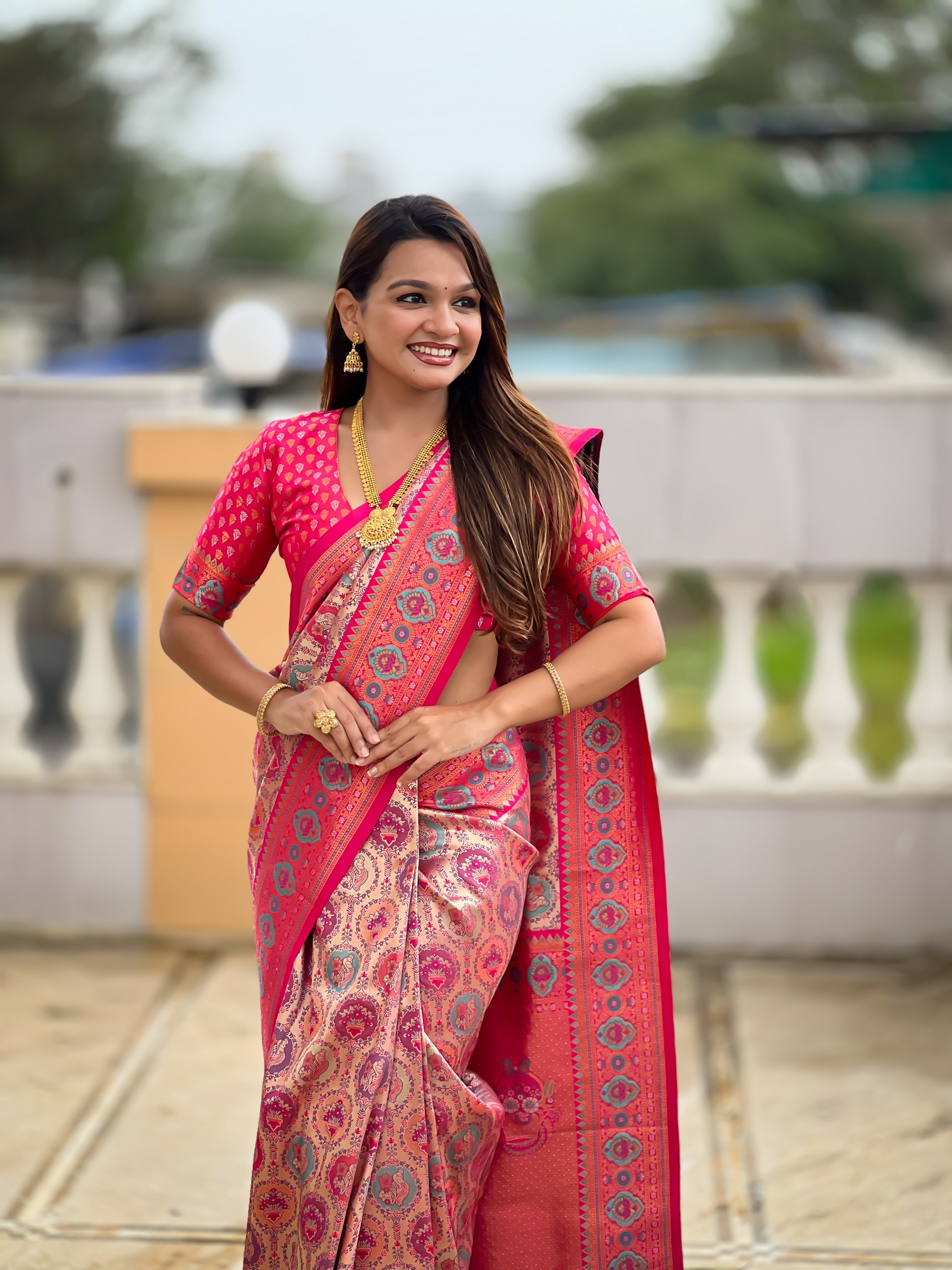 Pink Color Kanjivaram Silk Woven Designer Graceful Partywear Saree