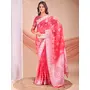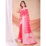 Pink Color Linen Cotton Fabric Wevon Jacquard Designer Beautiful Partywear Saree
