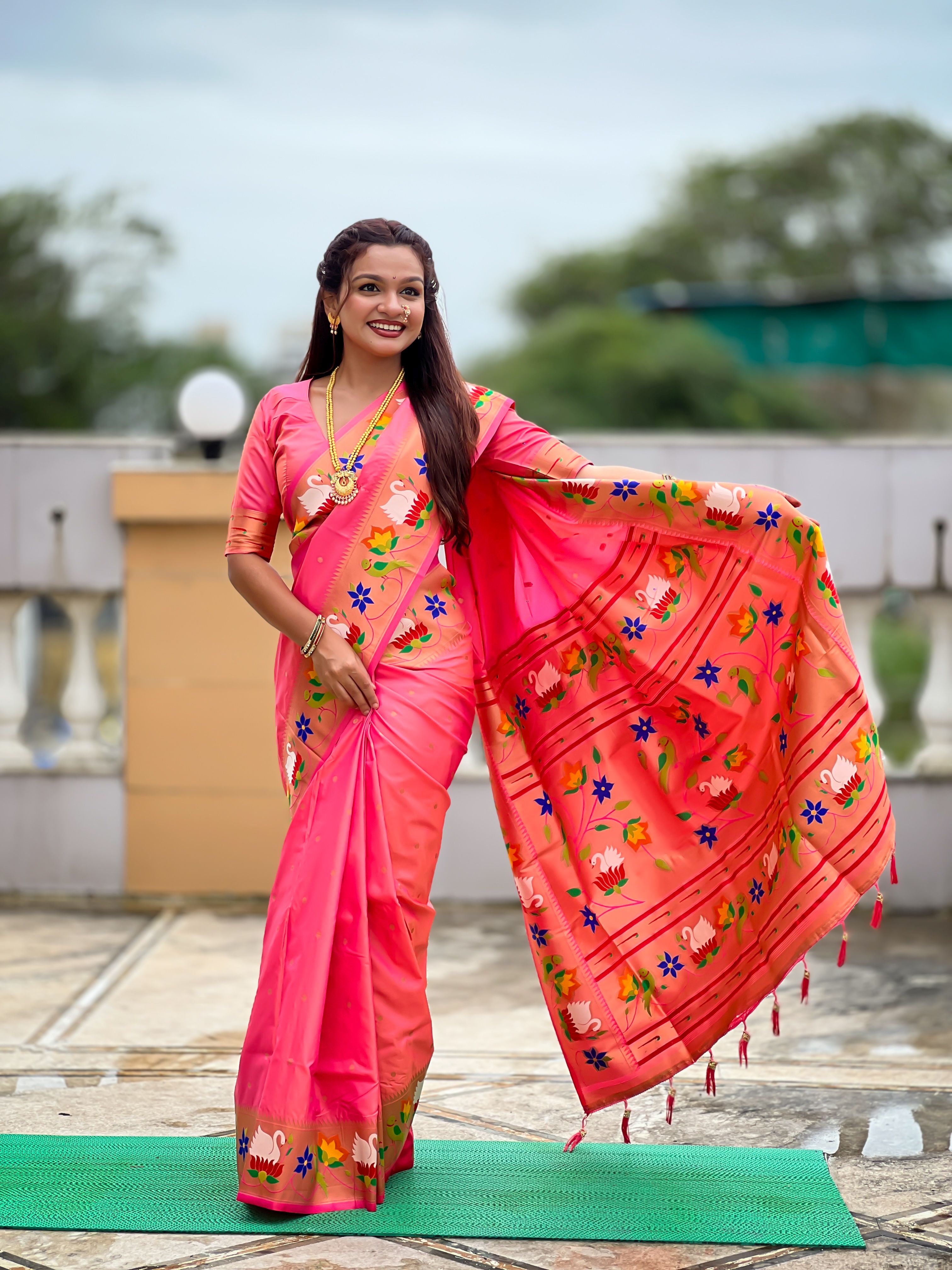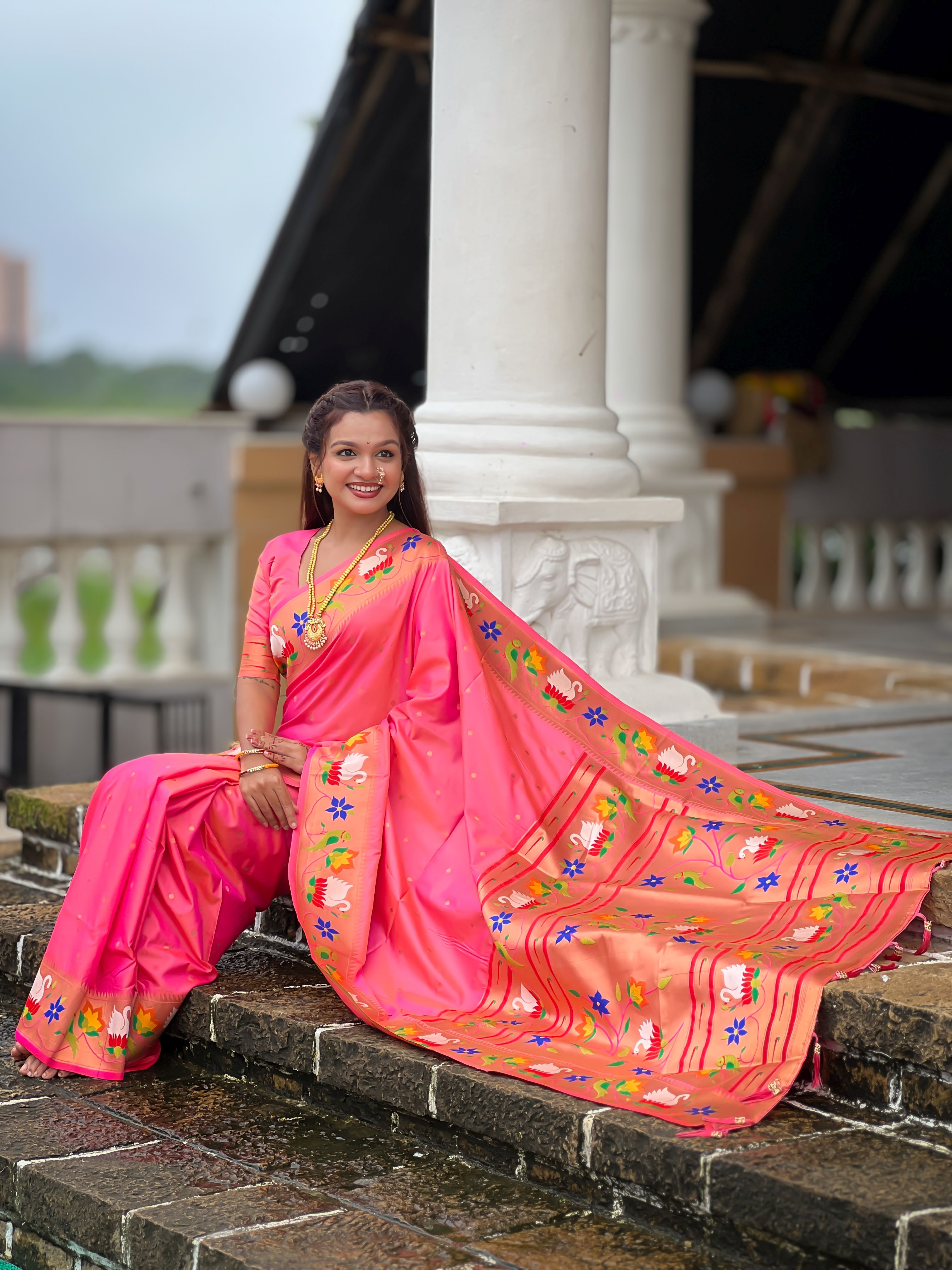 Pink Color Paithani Silk Woven Meenakari Jacquard Designer Heavy Wedding Special Saree