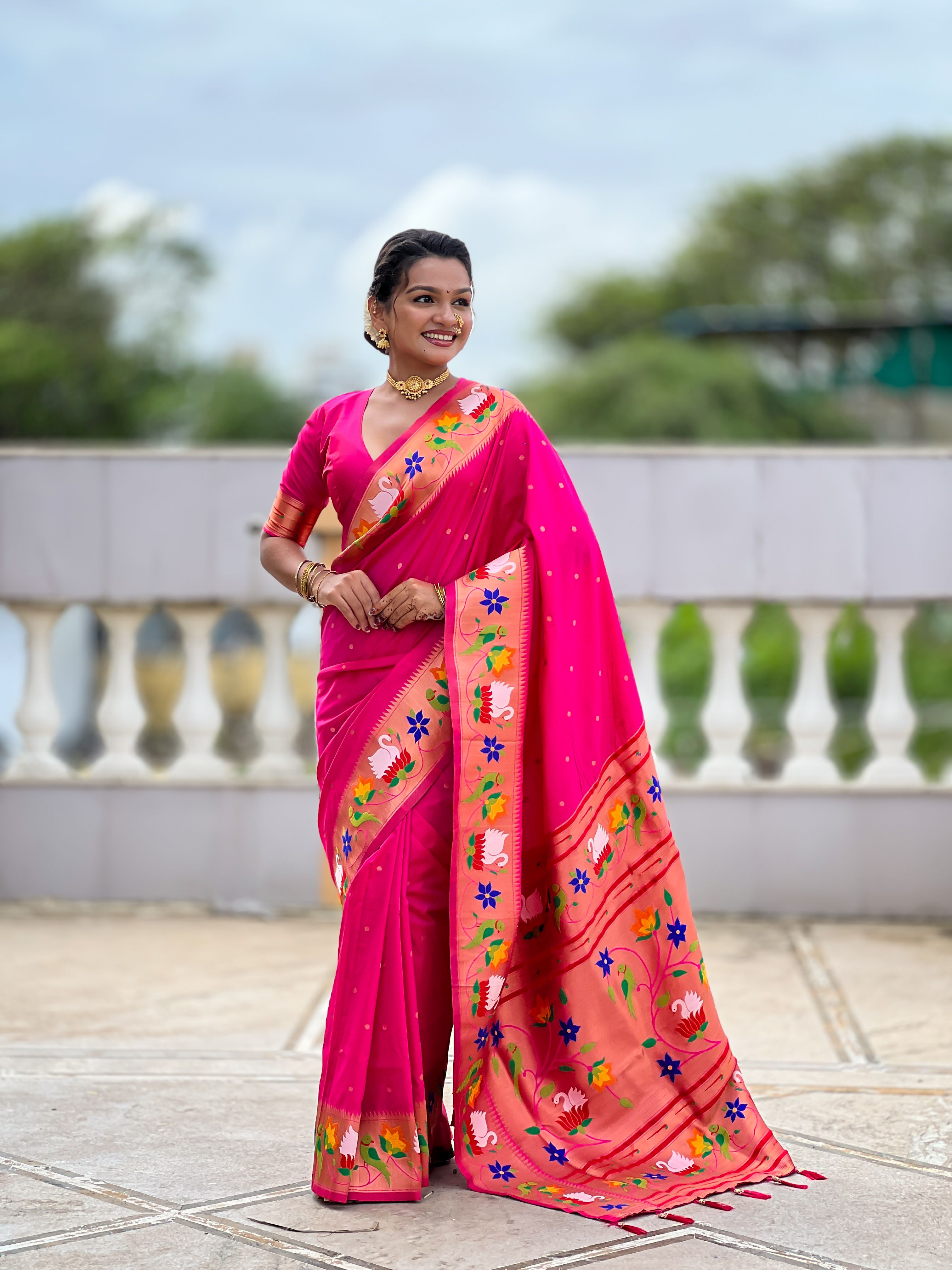 Pink Color Paithani Silk Woven Meenakari Jacquard Designer Heavy Wedding Special Saree