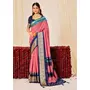 Pink Color Velvet Tussar Silk Fabric Woven Saree With Smart Elegant Print