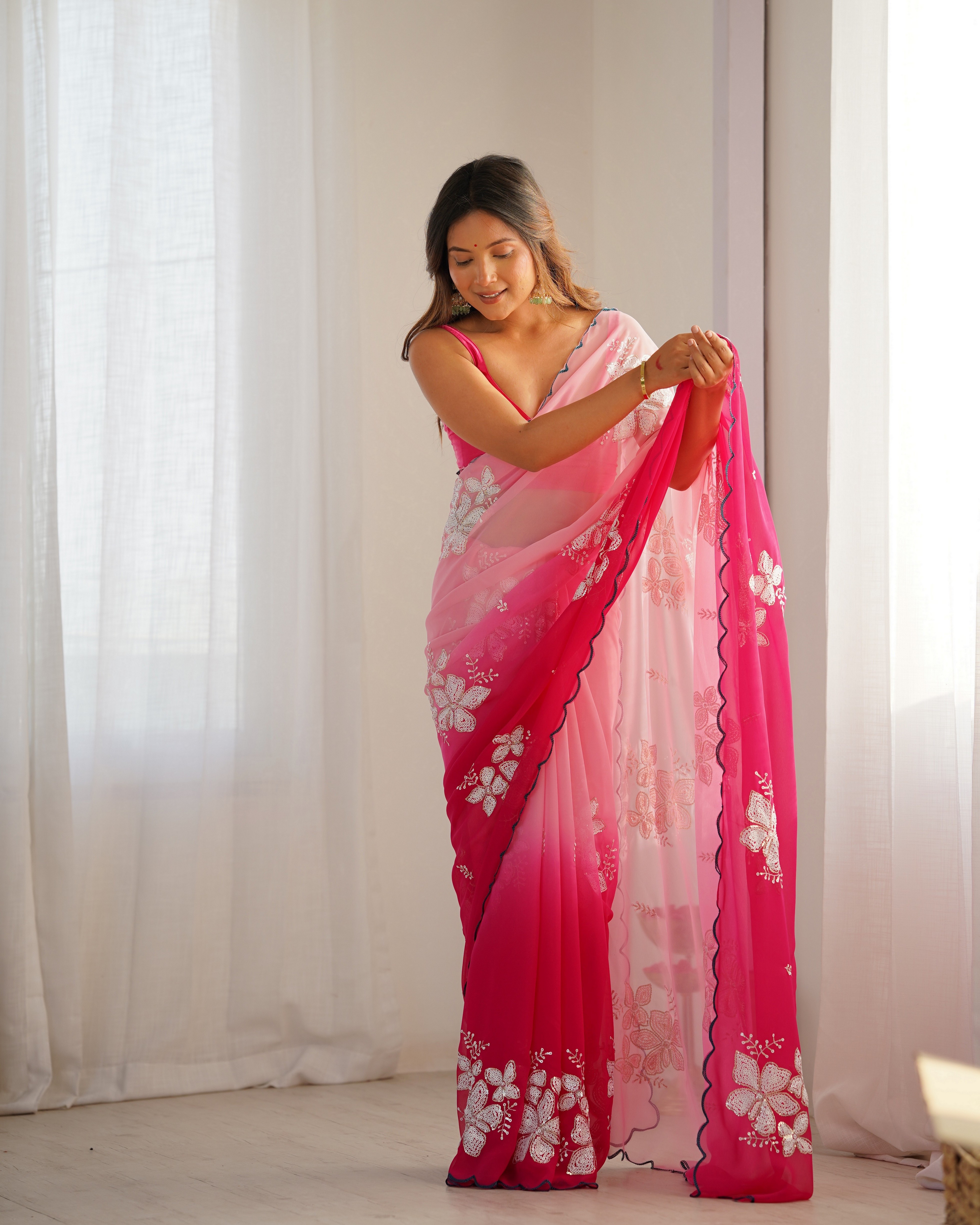 Pink Padding Color Georgette Fabric Sequins Embroidered Saree