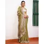 Pista Color Embroidery Work Tissue Fabric Beautiful Ceremonial Saree