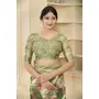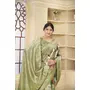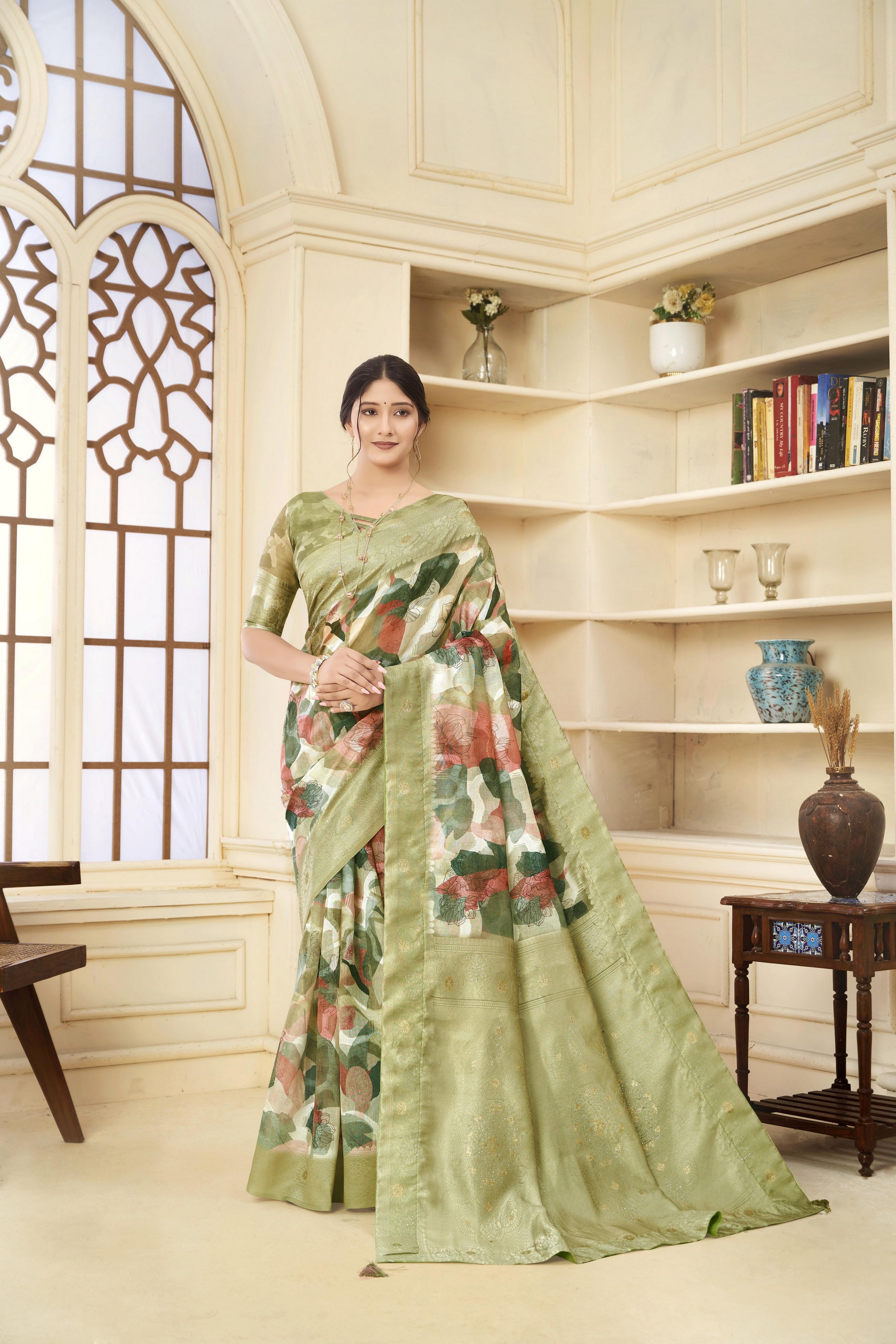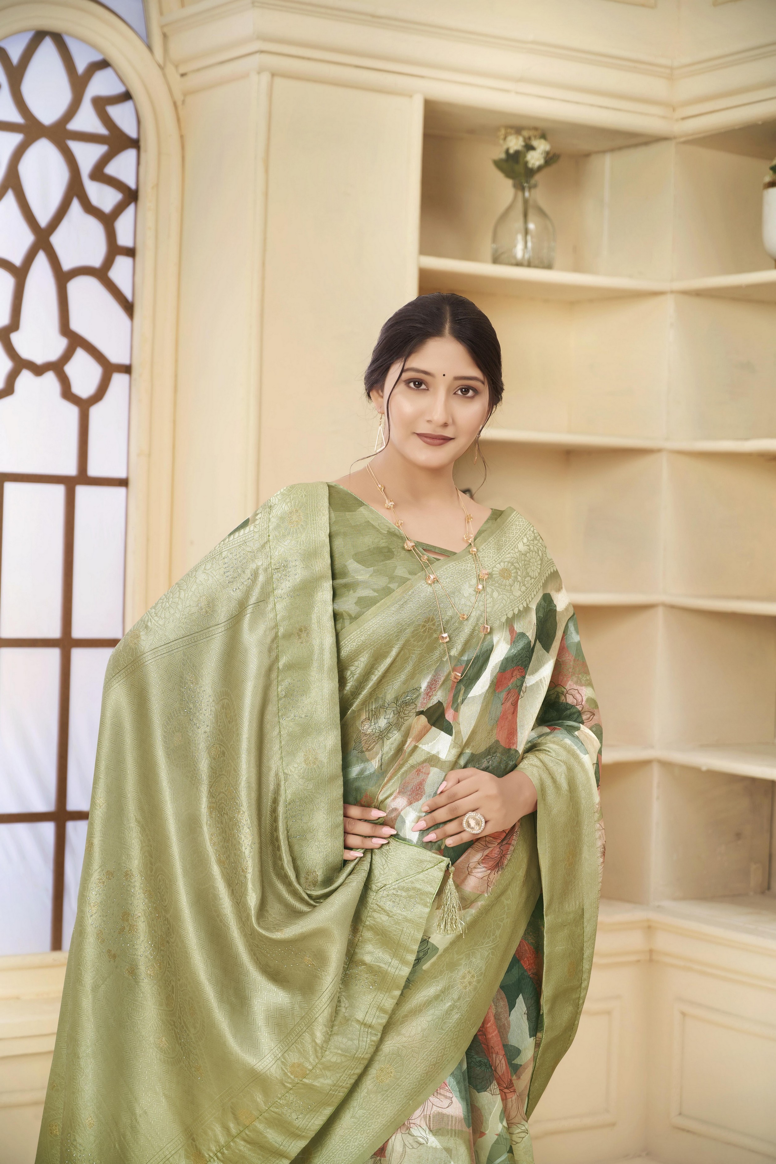 Pista Color Wevon Jacquard Designer With Printed Rich Silk Fabric Stylish Ceremonial Saree