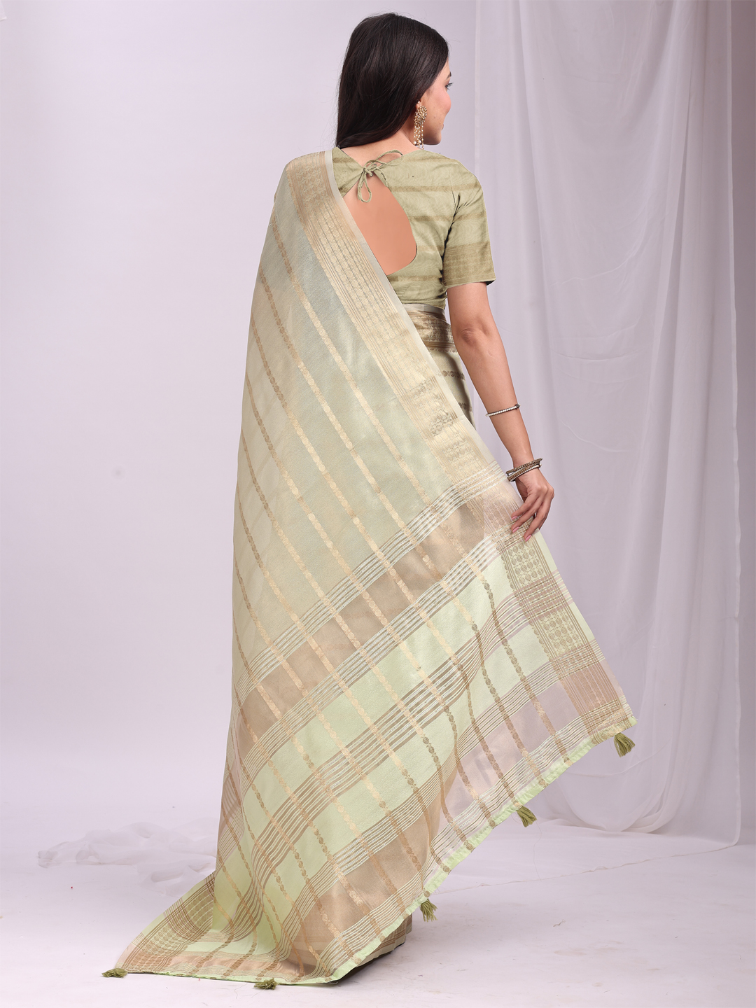 Pista Color Woven Zari Designer Ethnic Organza Fabric Saree