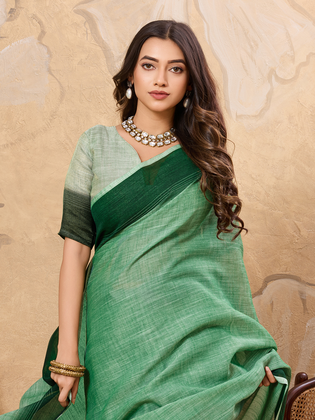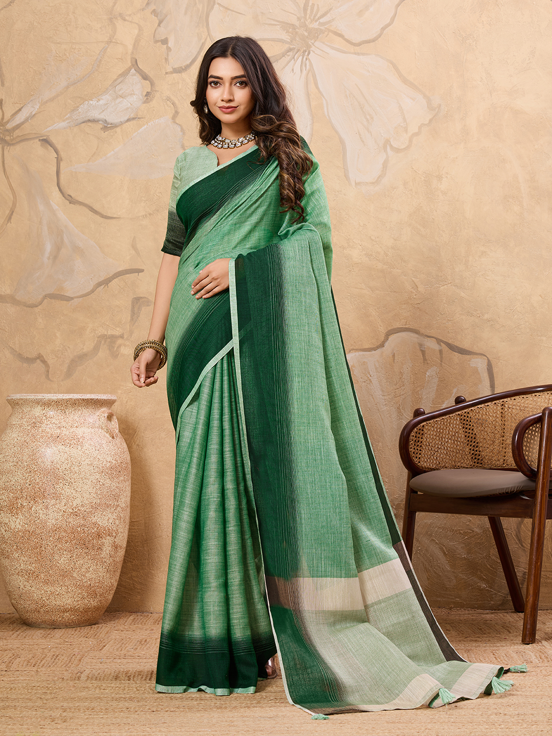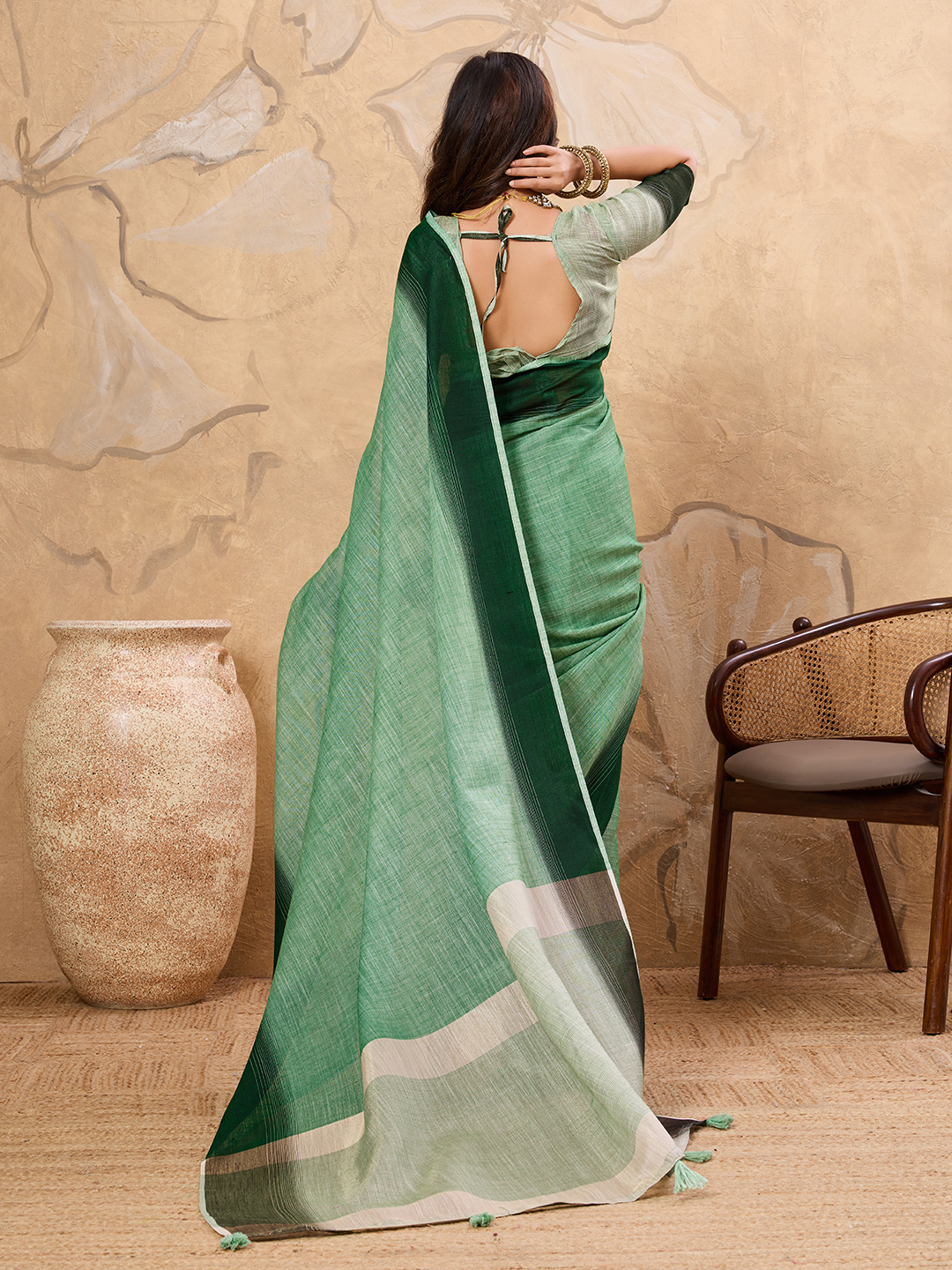 Pista Green color Linen Based Fabric Ethnic Woven Designer Ceremonial Saree