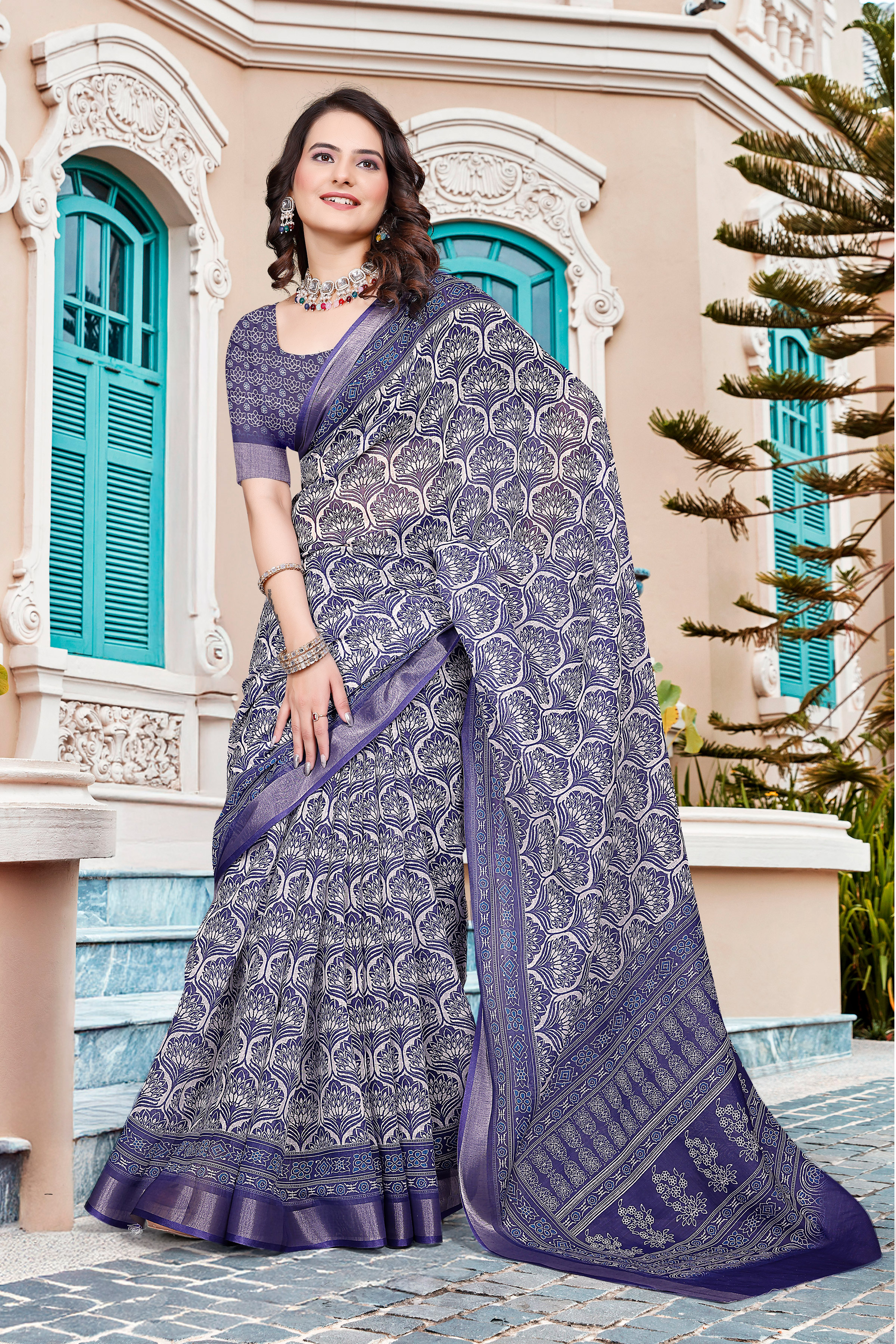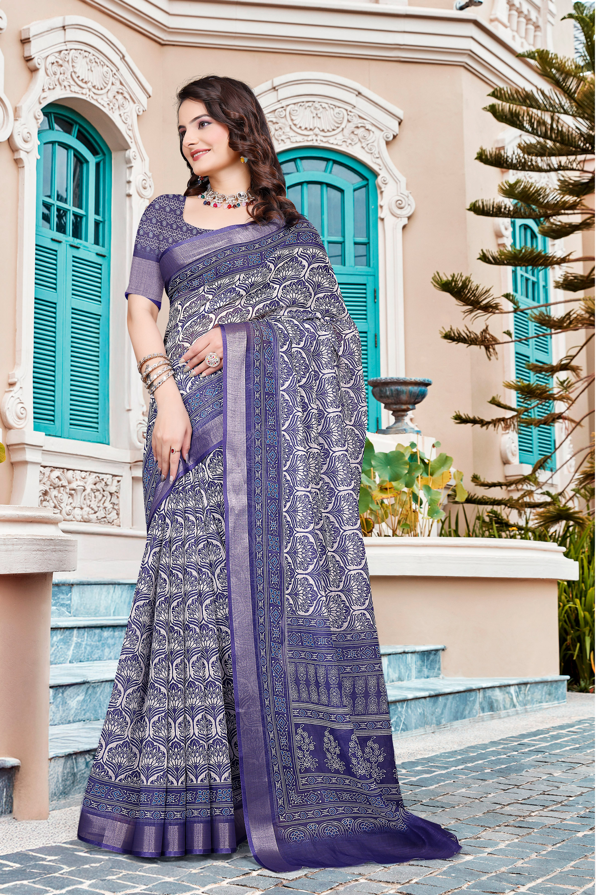 Garb These Fastive Saree in Fine Colored.These Saree Are Linen Cotton And Blouse is Fabricated On Linen Cotton Pair.Its Beautified With Wevon Jari Border With Designer Digital Printed.