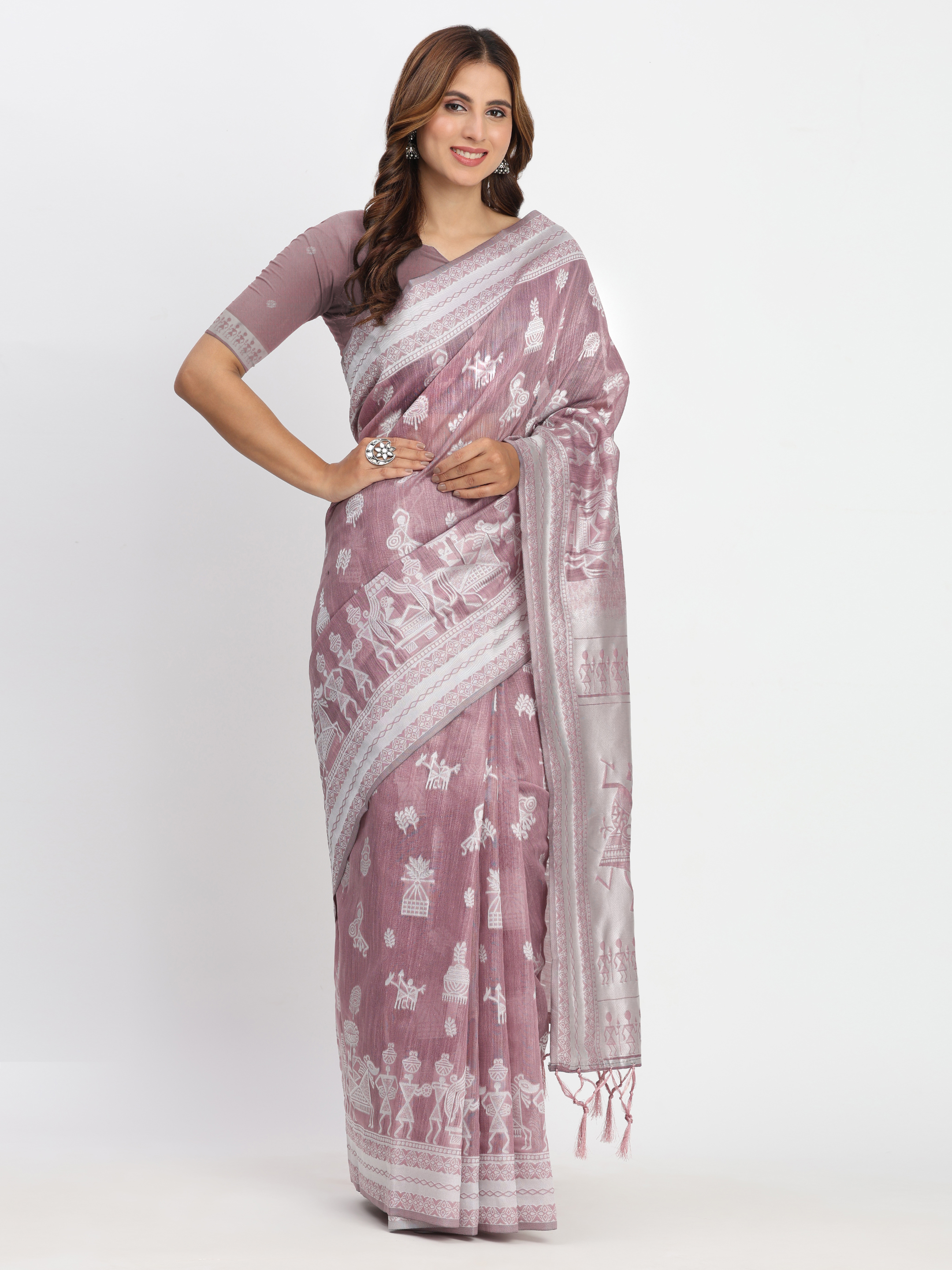 Purple Color Linen Cotton Woven Designer Graceful Ethnic Saree