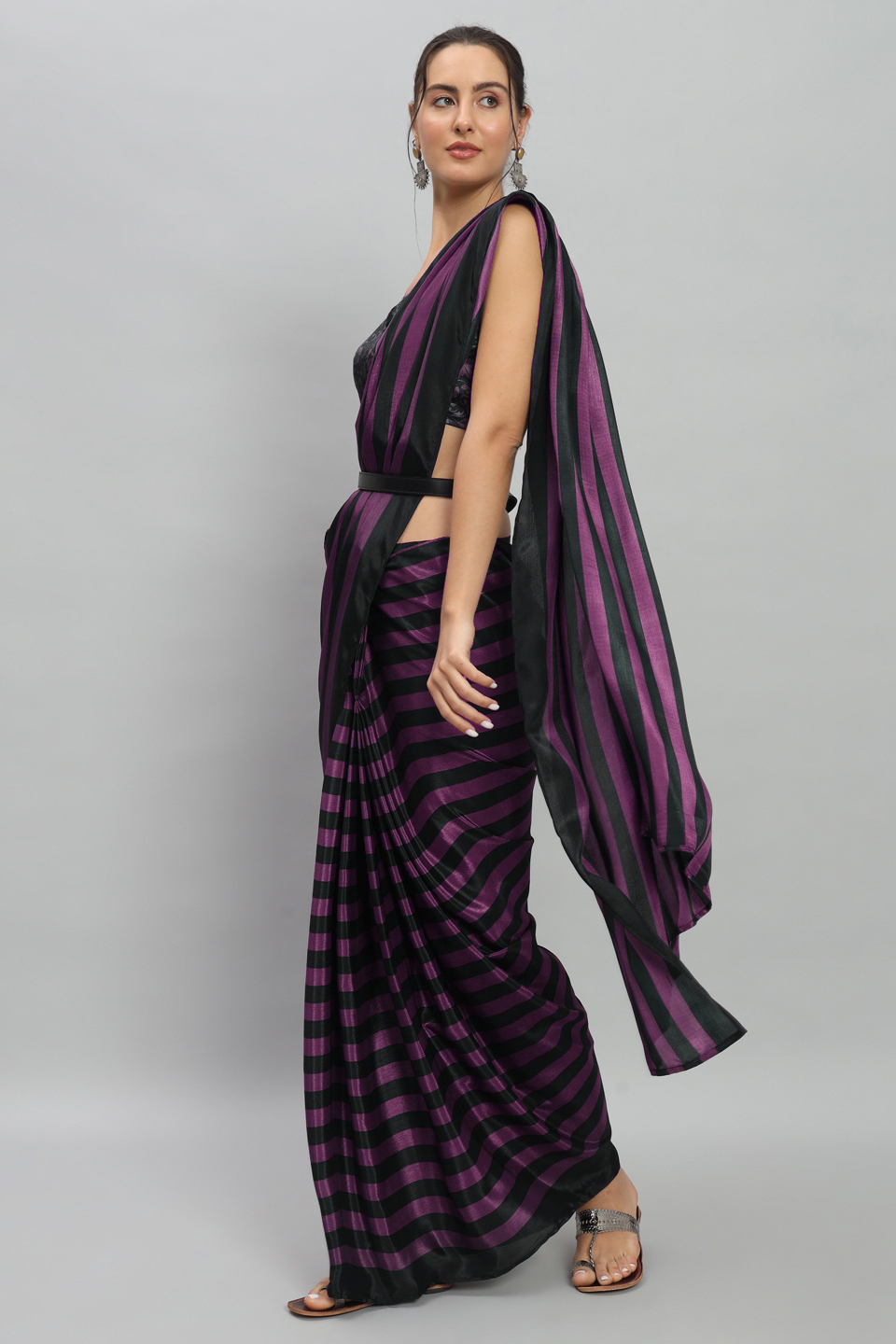 Purple Color Satin Fabric Designer Ready To Wear Ceremonial Saree