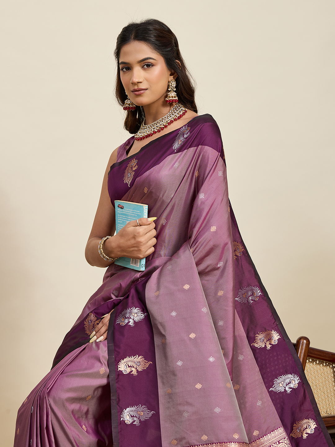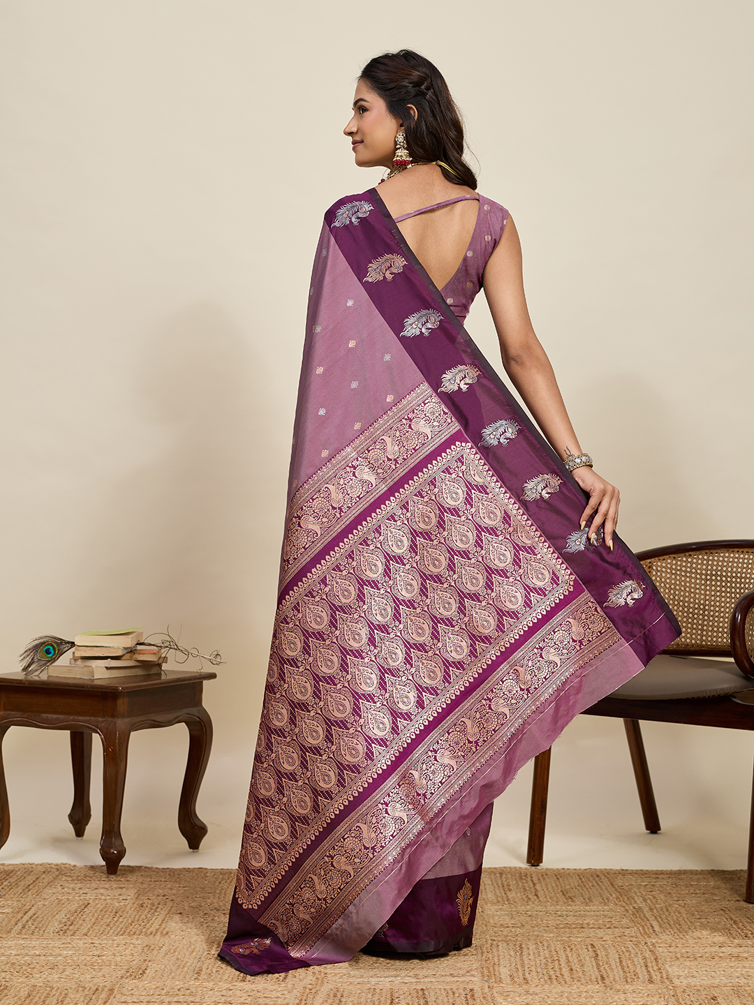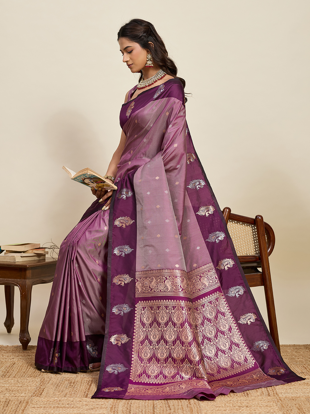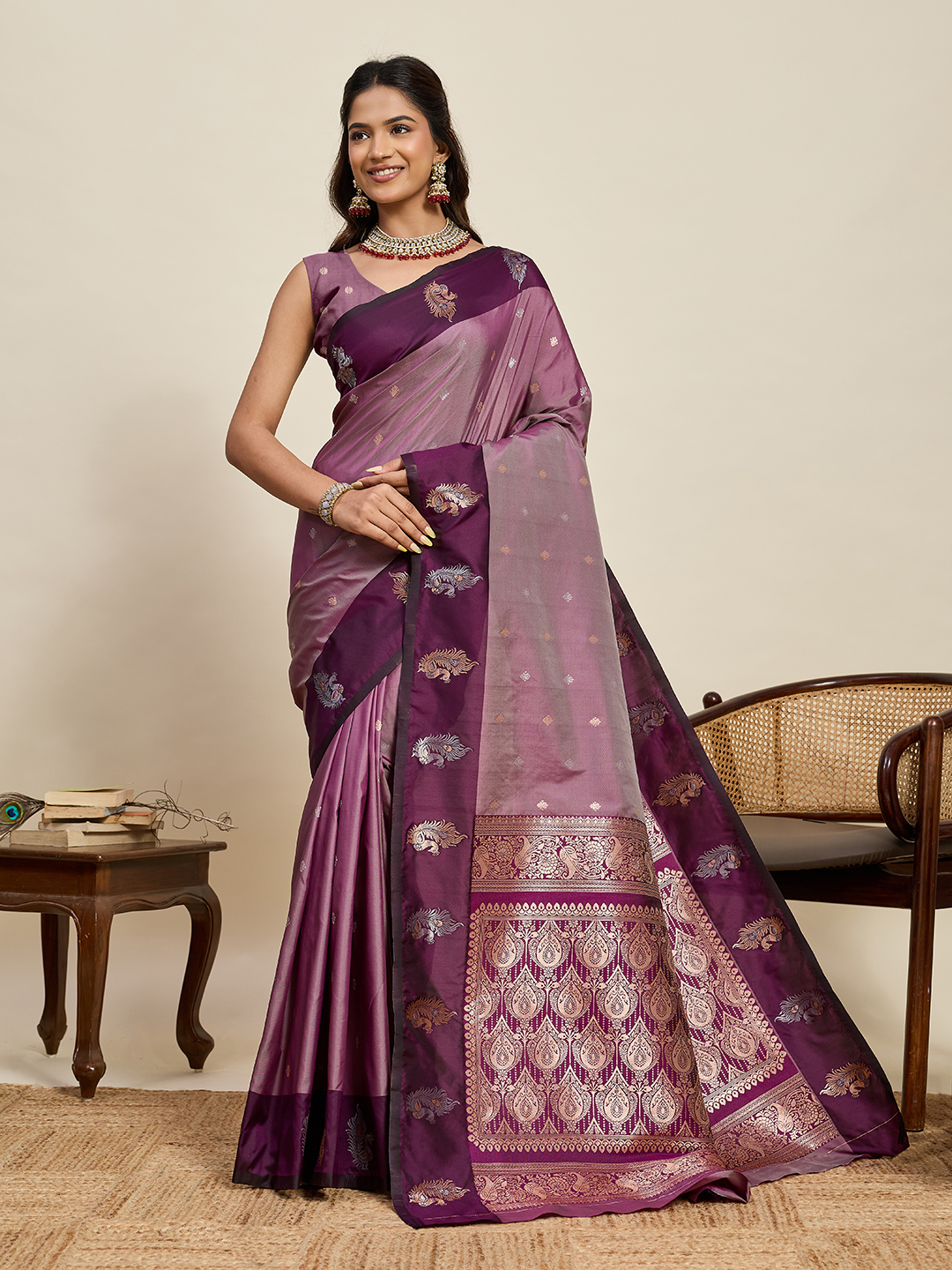 Purple Color Soft Silk Fabric Designer Ethnic Woven Traditional Saree
