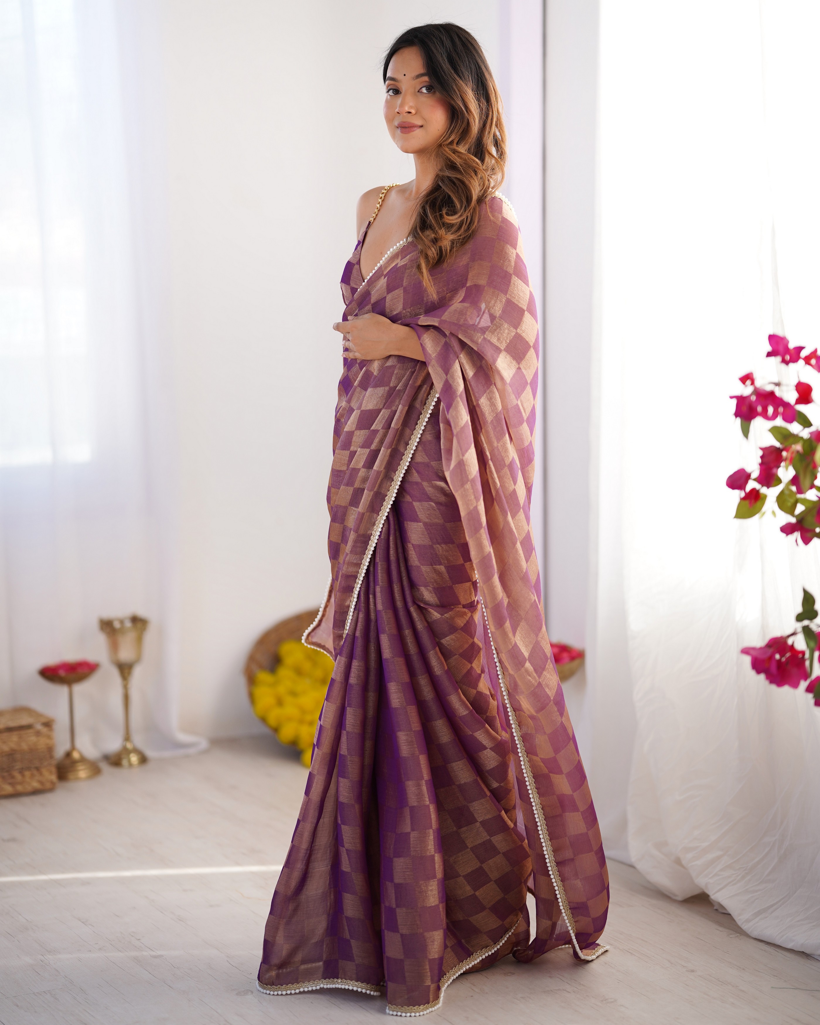 Purple Color Woven Chiffon Fabric Ethnic Bollywood Party Saree