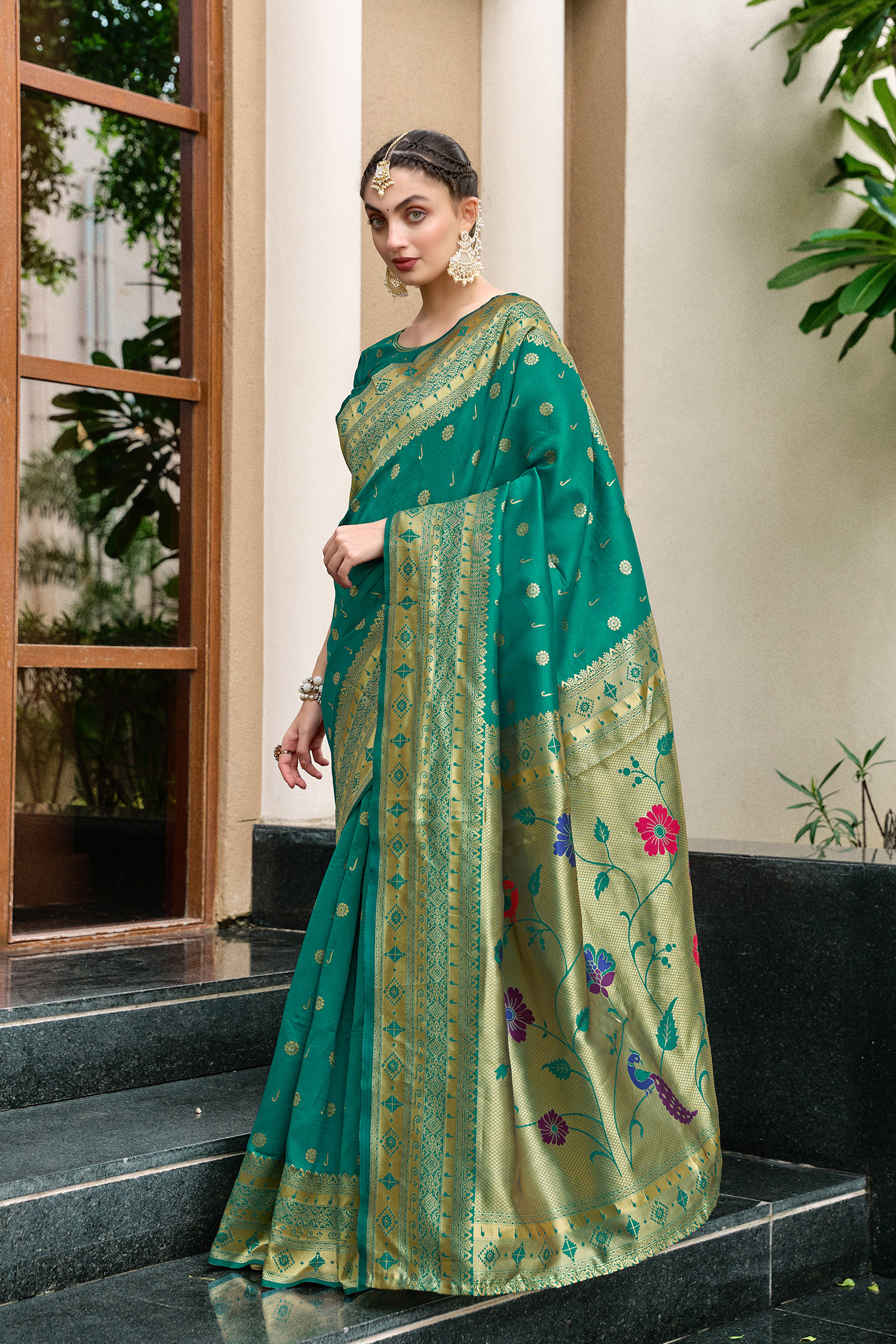 Rama Color Beautiful Silk Blended Woven Zari Designer Ceremonial Saree