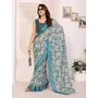 Rama Color Moss Satin Patta Designer Flower Printed Ceremonial Saree