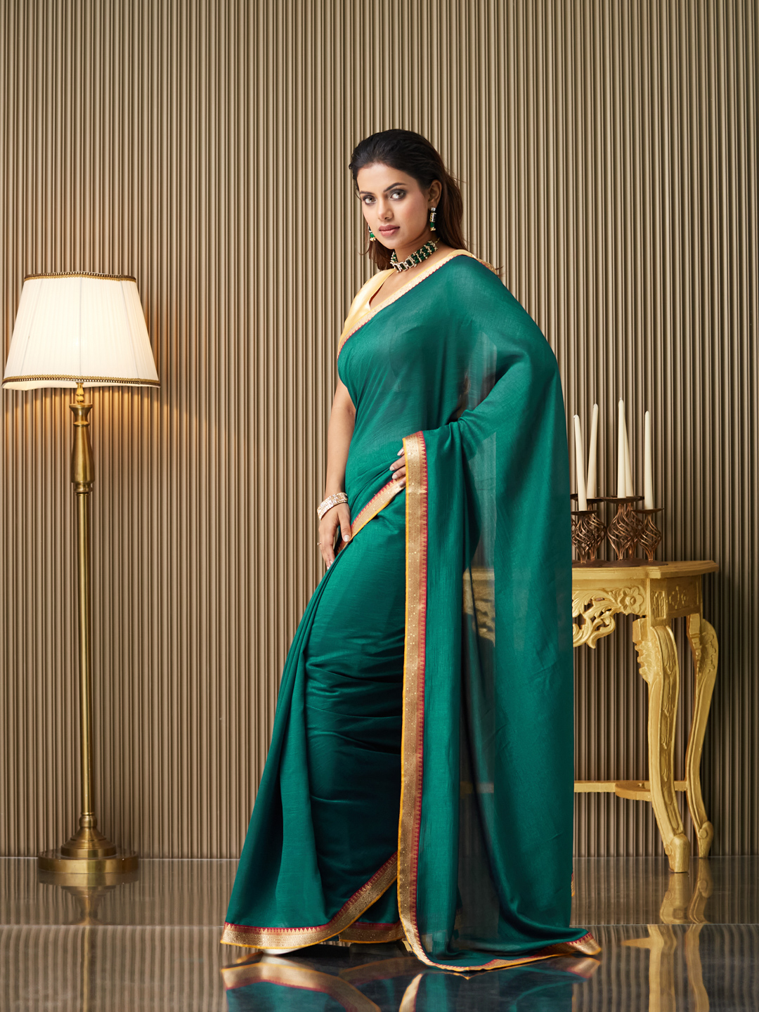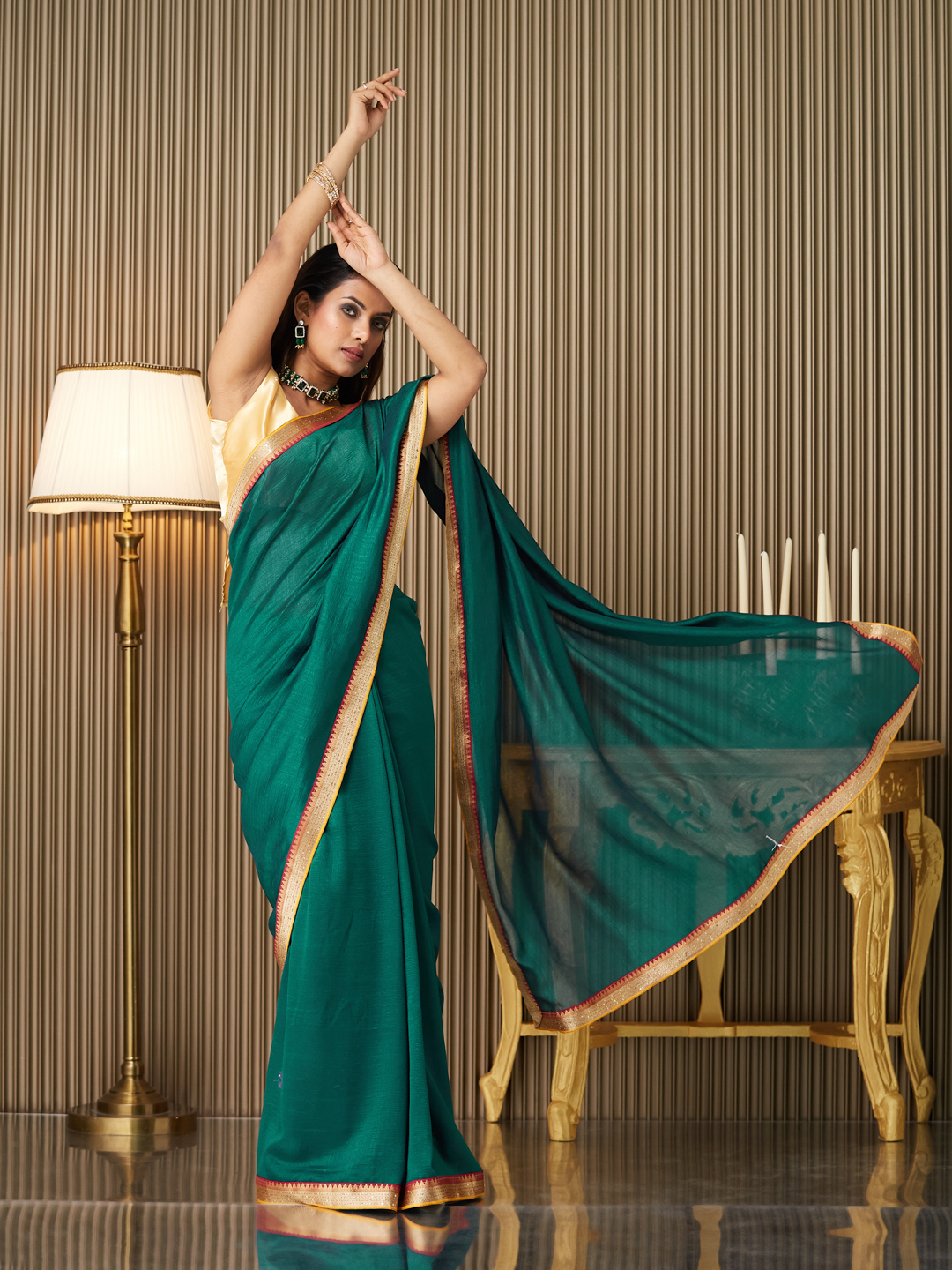 Rama Color Silk Fabric Fancy Designer Bollywood Party Saree