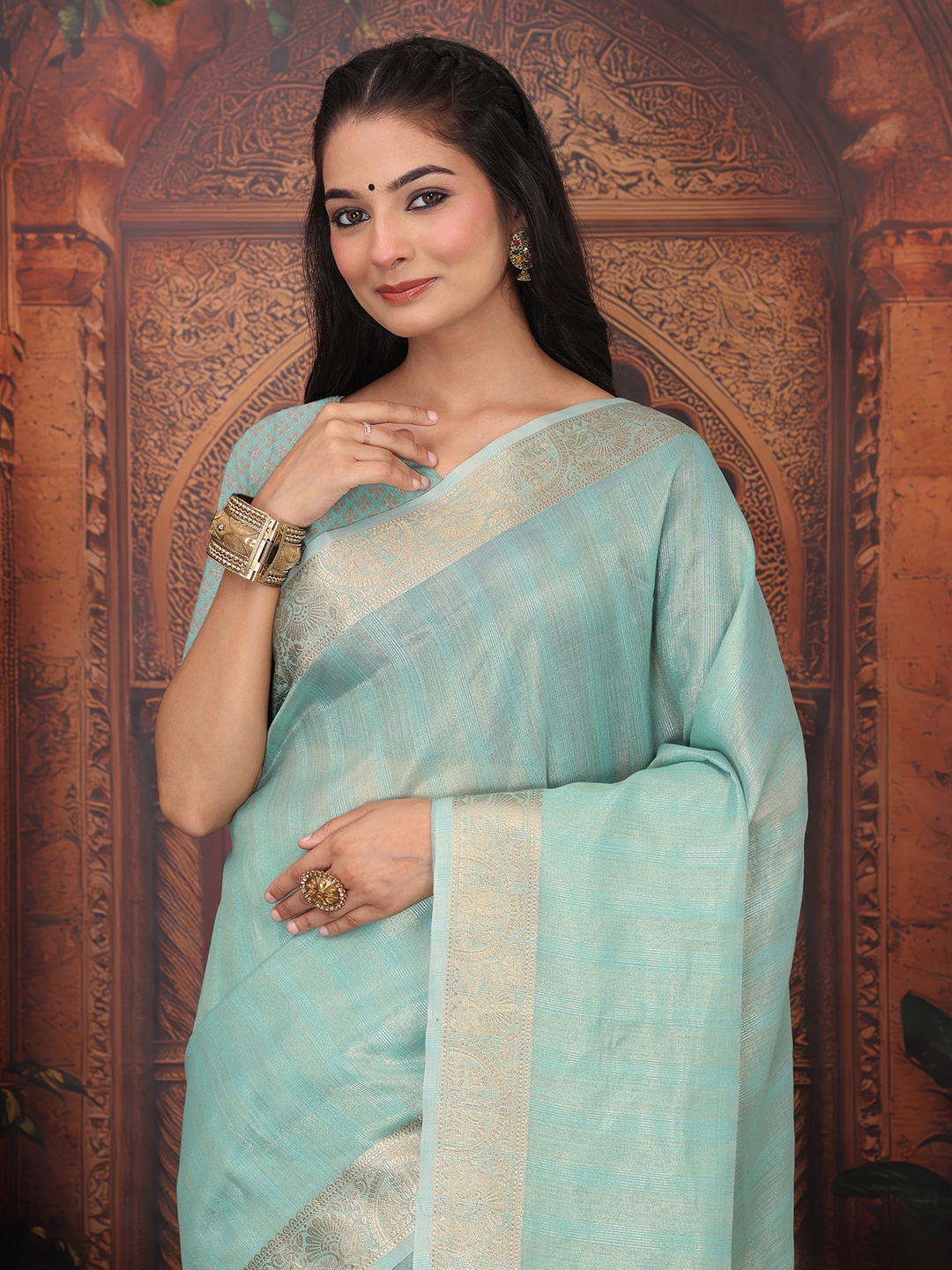 Rama Green Color Organza Fabric Woven Designer Trendy Ethnic Saree