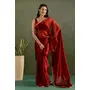 Red Color Chiffon Fabric Ready To Wear Designer Solid Partywear Saree