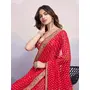 Red Color Georgette Fabric Designer Partywear Bandhej Saree