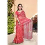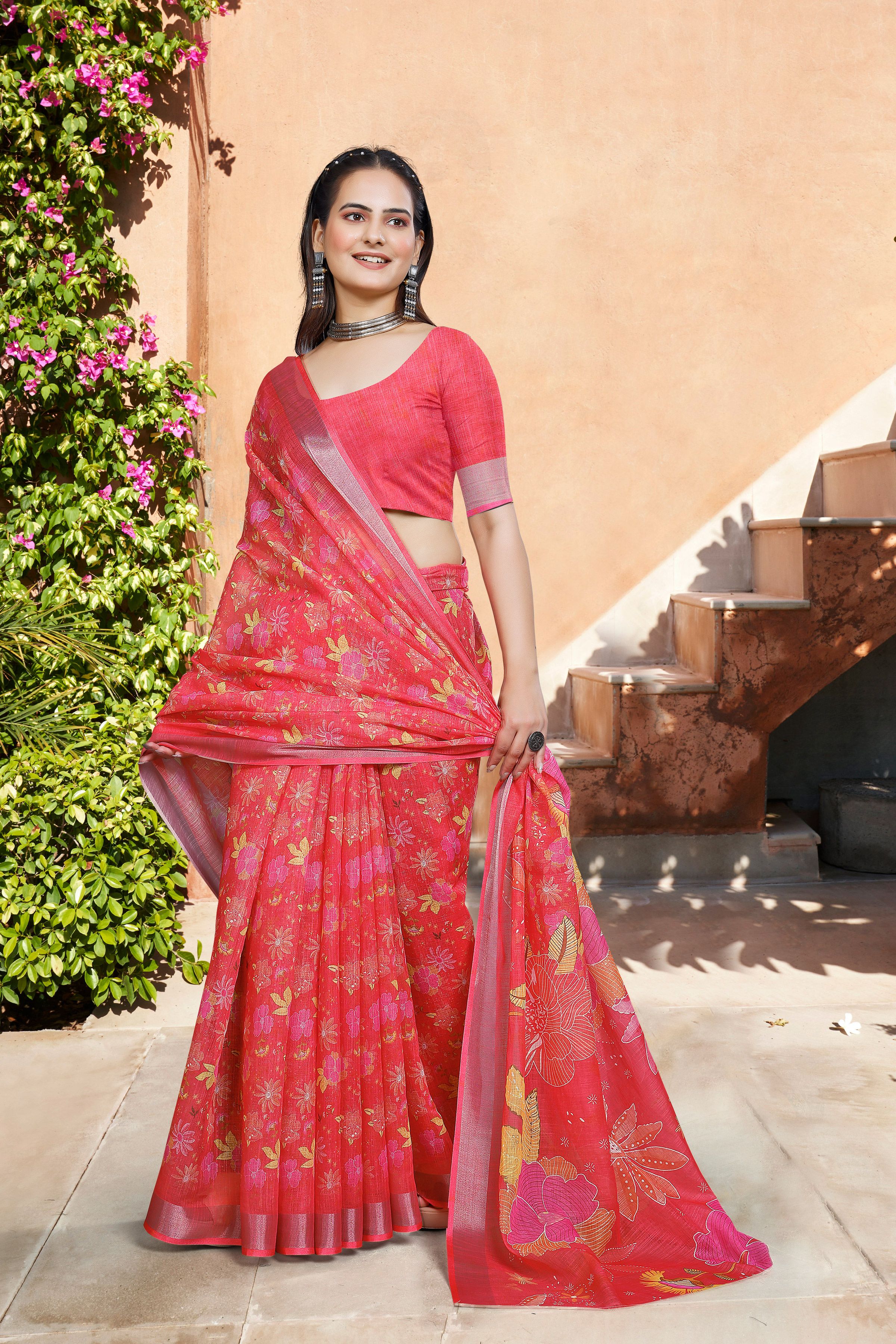 Red Color Linen Cotton Fabric Woven Border Designer Printed Saree
