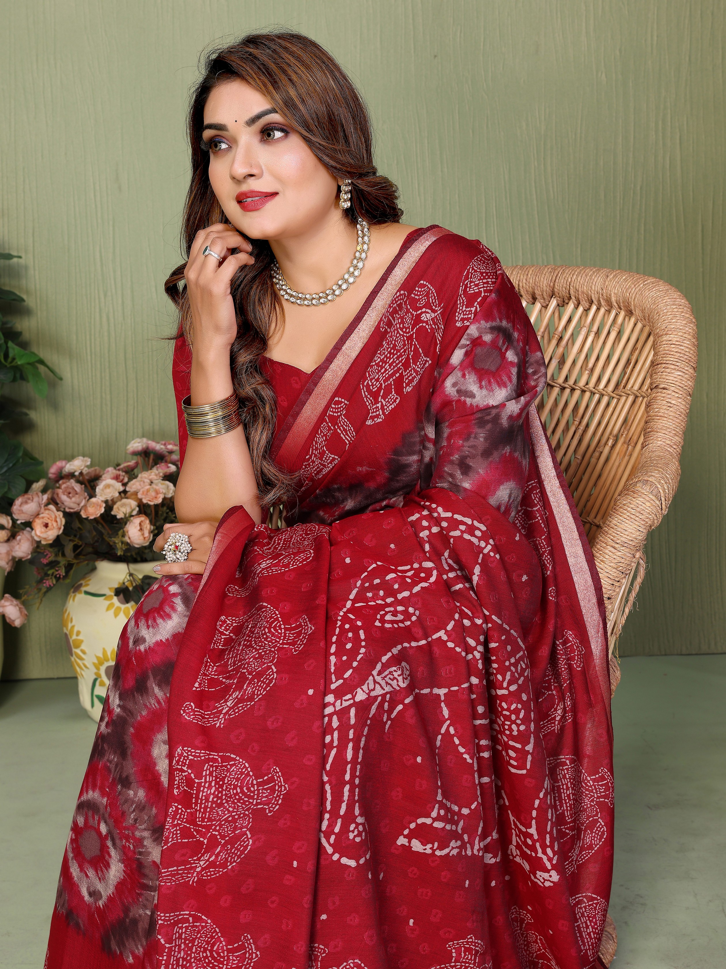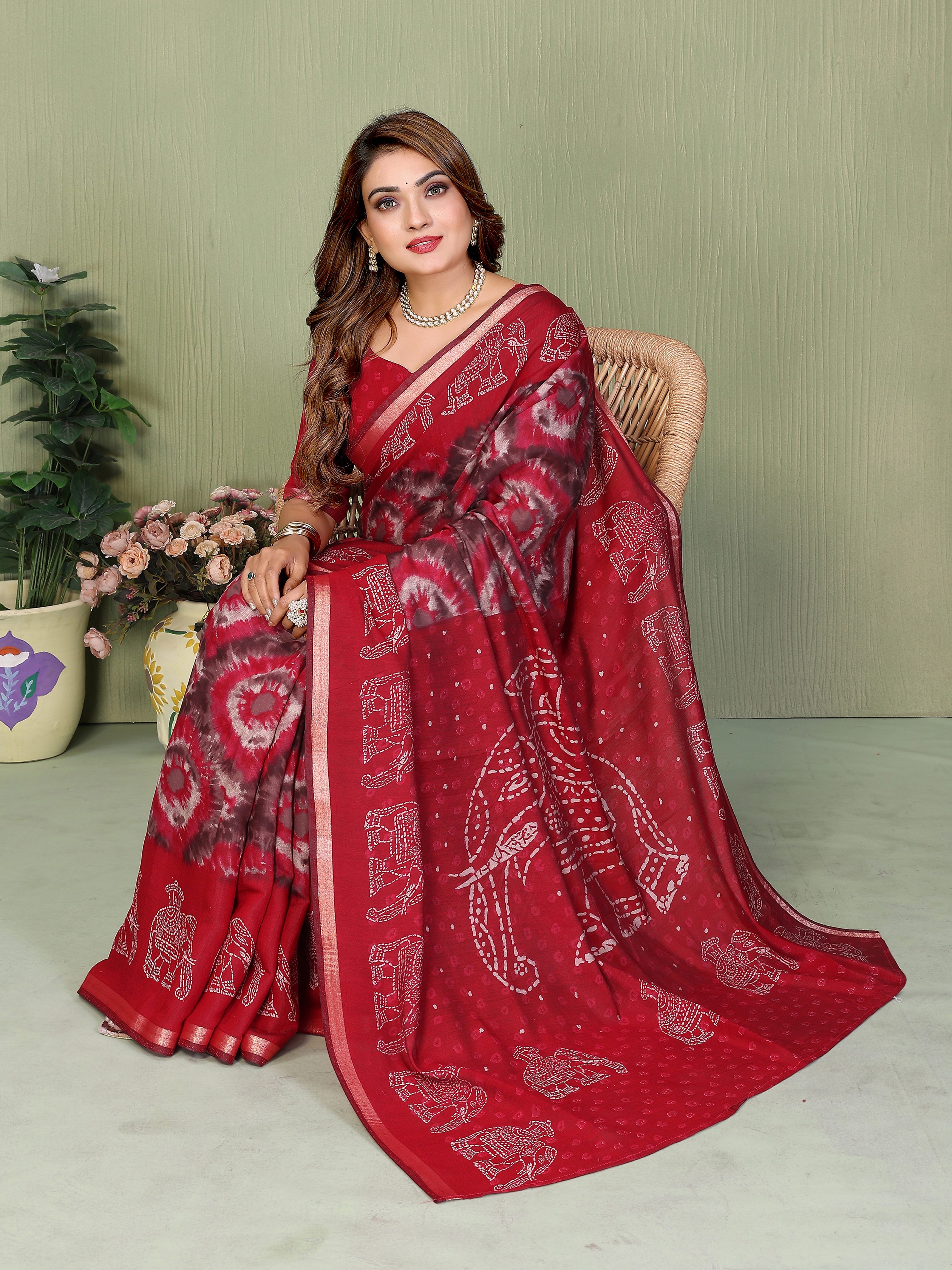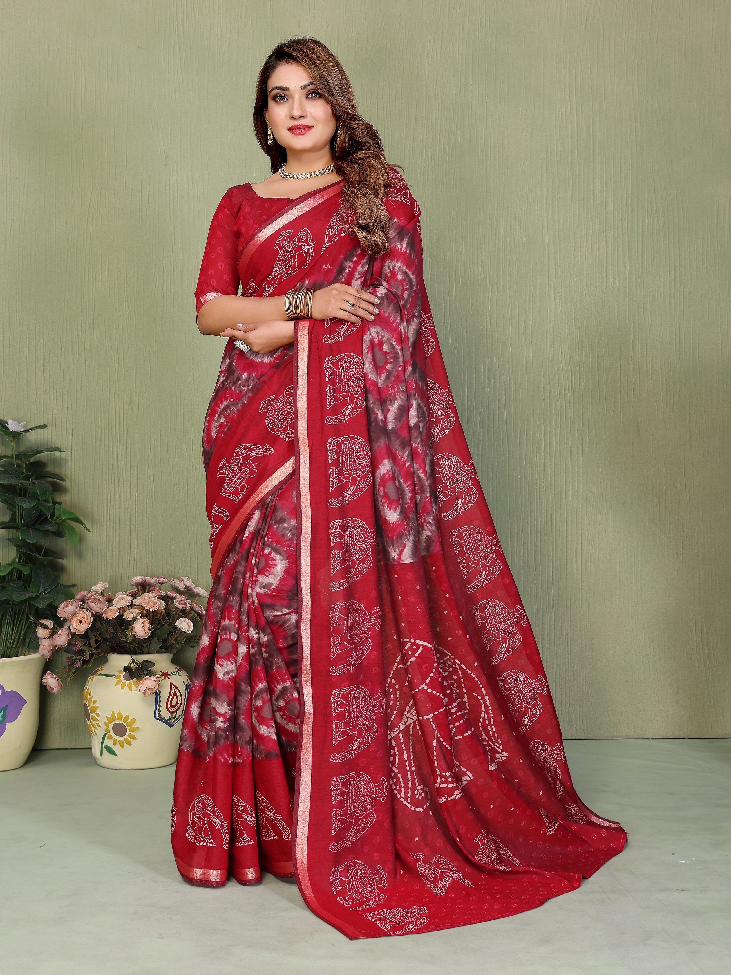 Red Color Mul Cotton Fabric Designer Printed Festive Special Saree