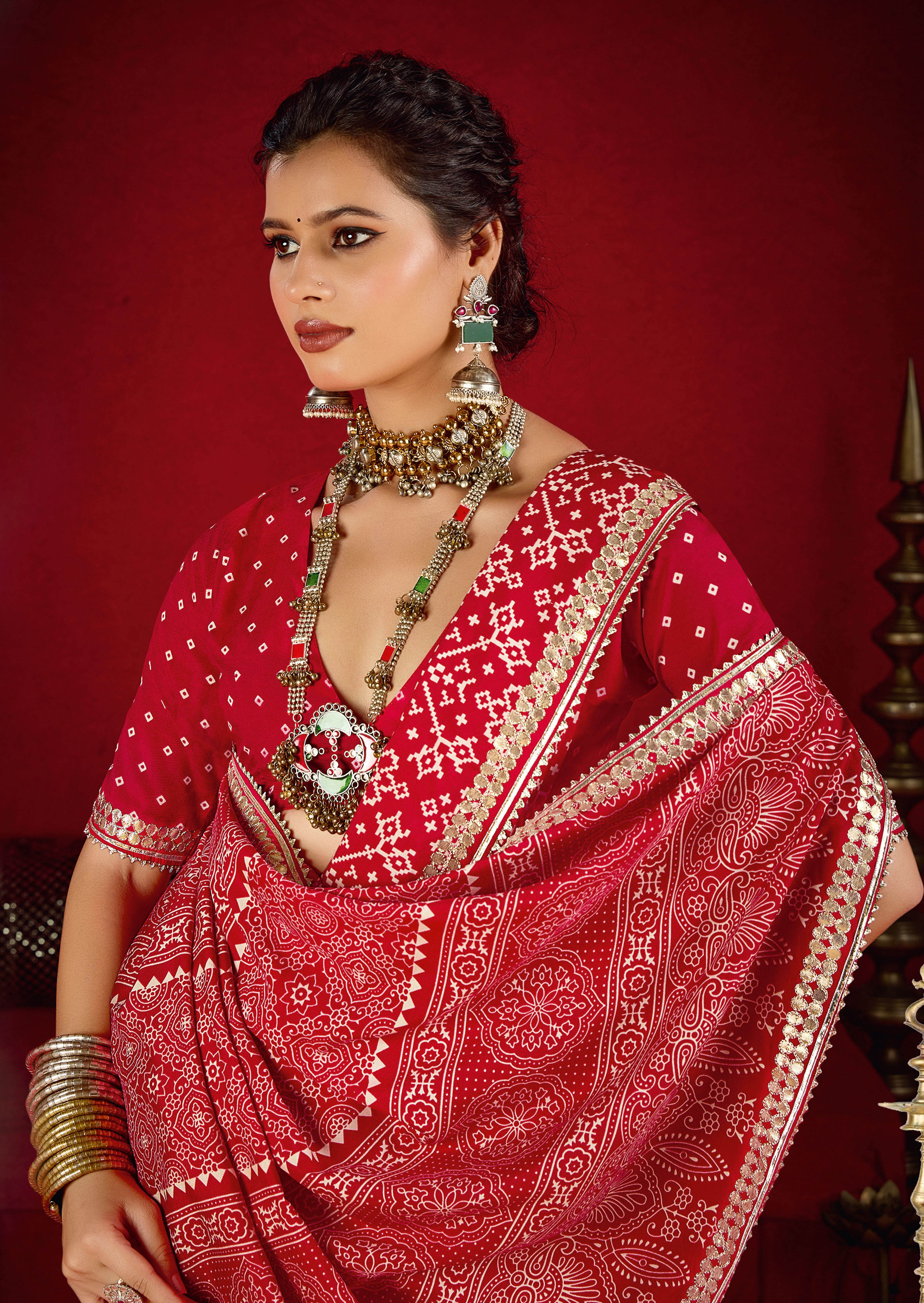 Red Color Velvet Tussar Silk Beautiful Partywear Saree