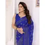 Royal Blue Color Georgette Fabric Designer Foil Printed Ceremonial Saree