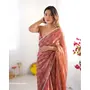 Rust Color Woven Chiffon Fabric Ethnic Bollywood Party Saree