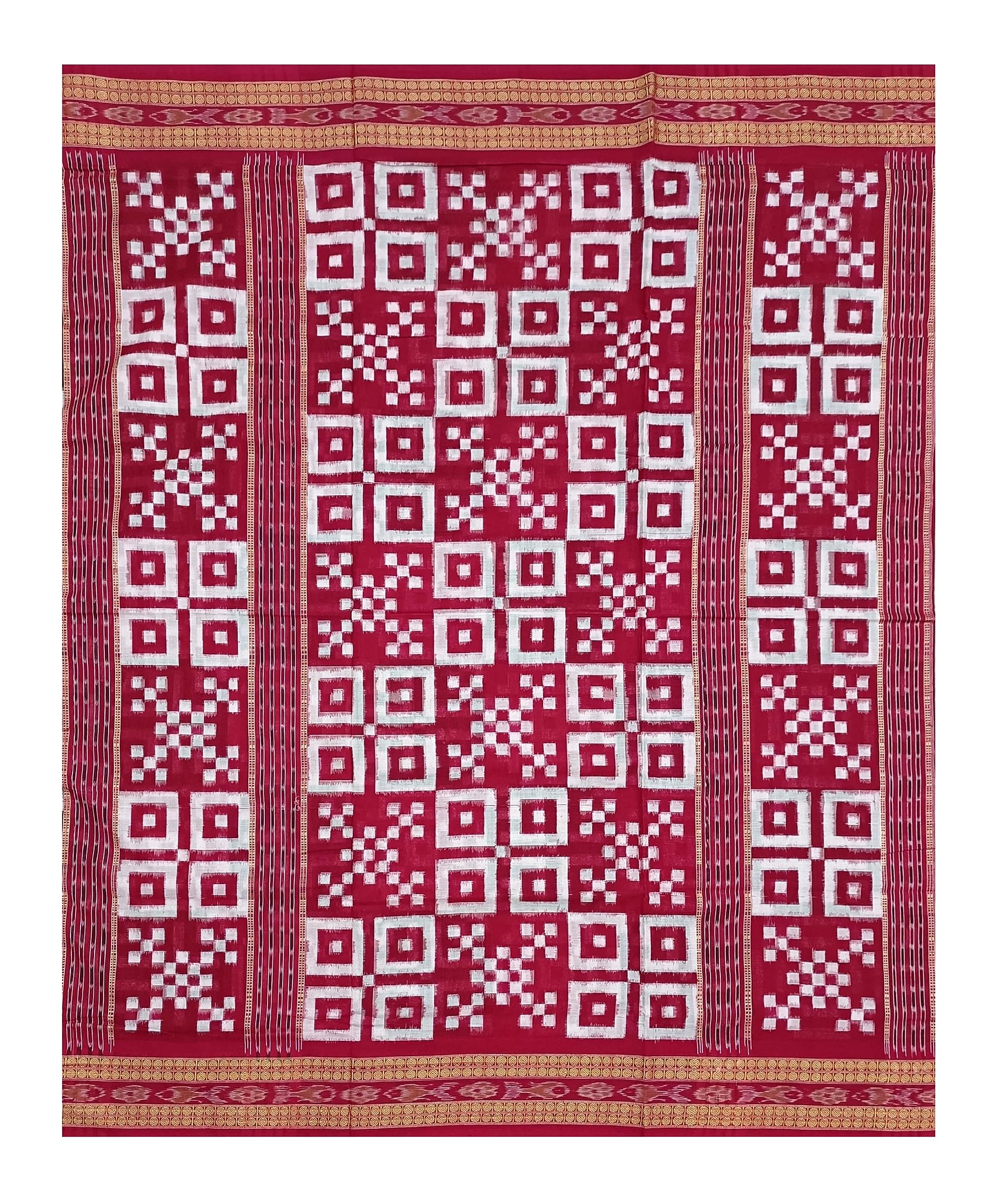 SAMBALPURI BANDHA CRAFT sambalpuri cotton saree with blouse piece(New Pasapali design in red white and black colors combination)