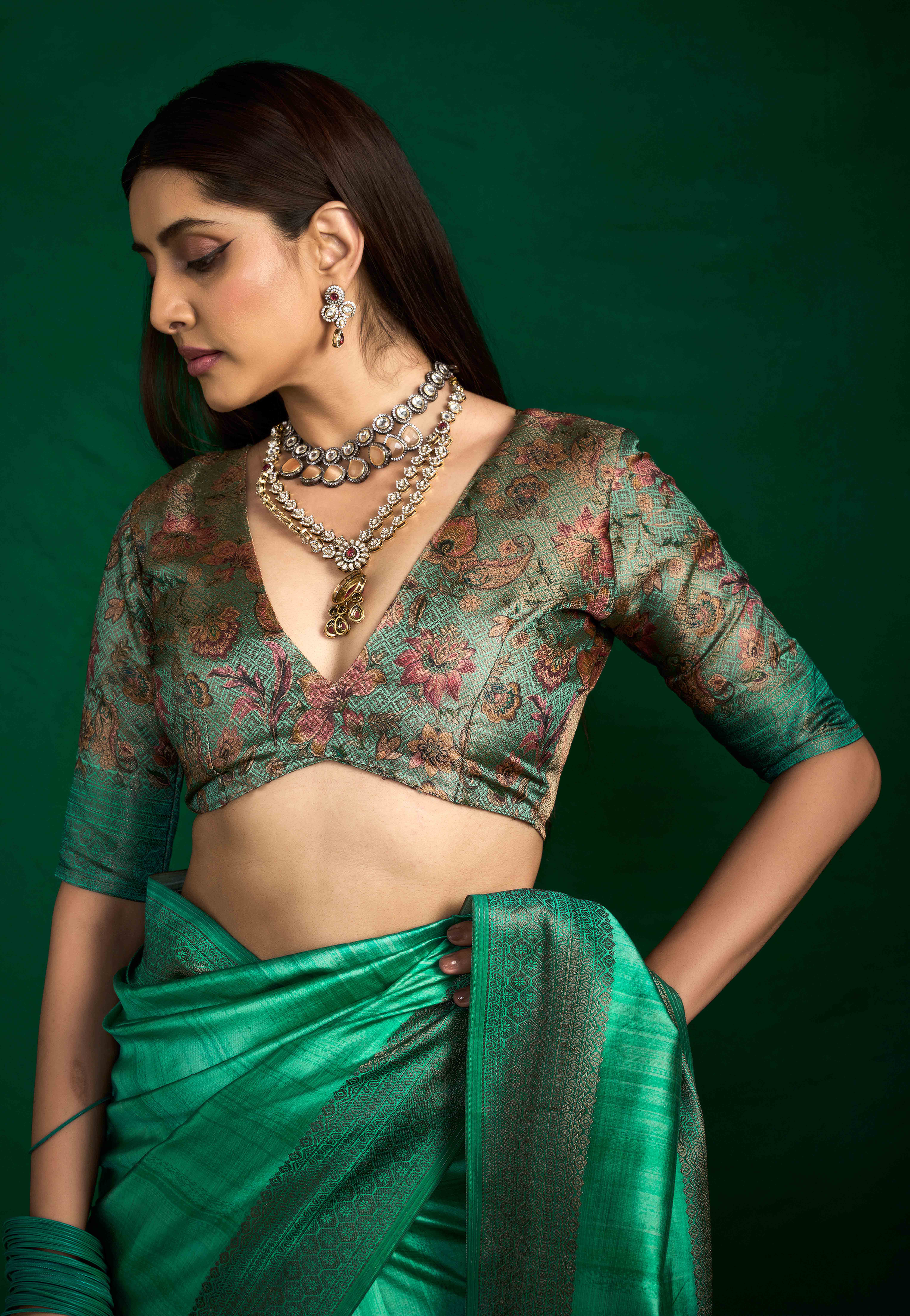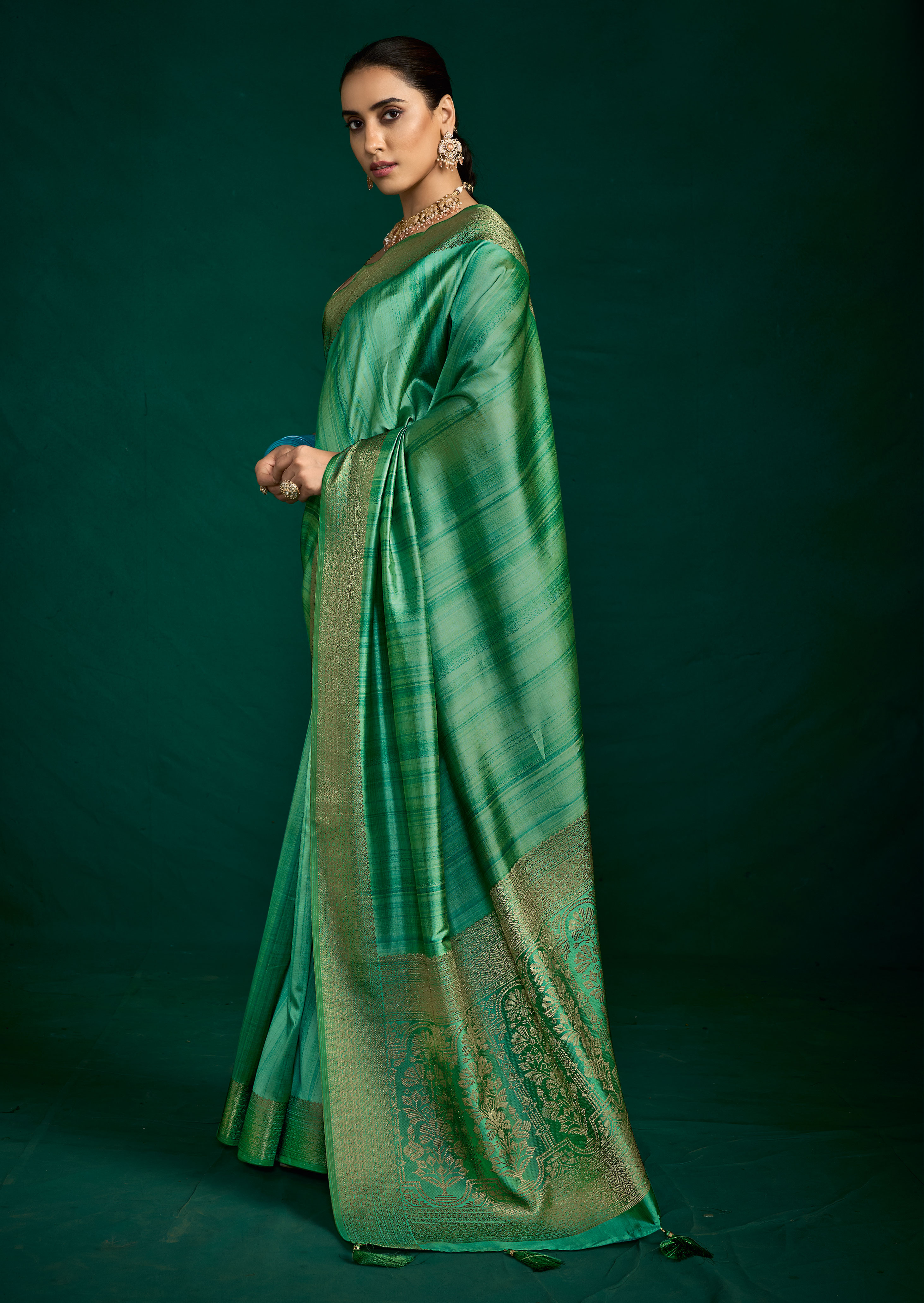 Sea Green Color Beautiful Tussar Silk Fabric Sophisticated Woven Designer Saree