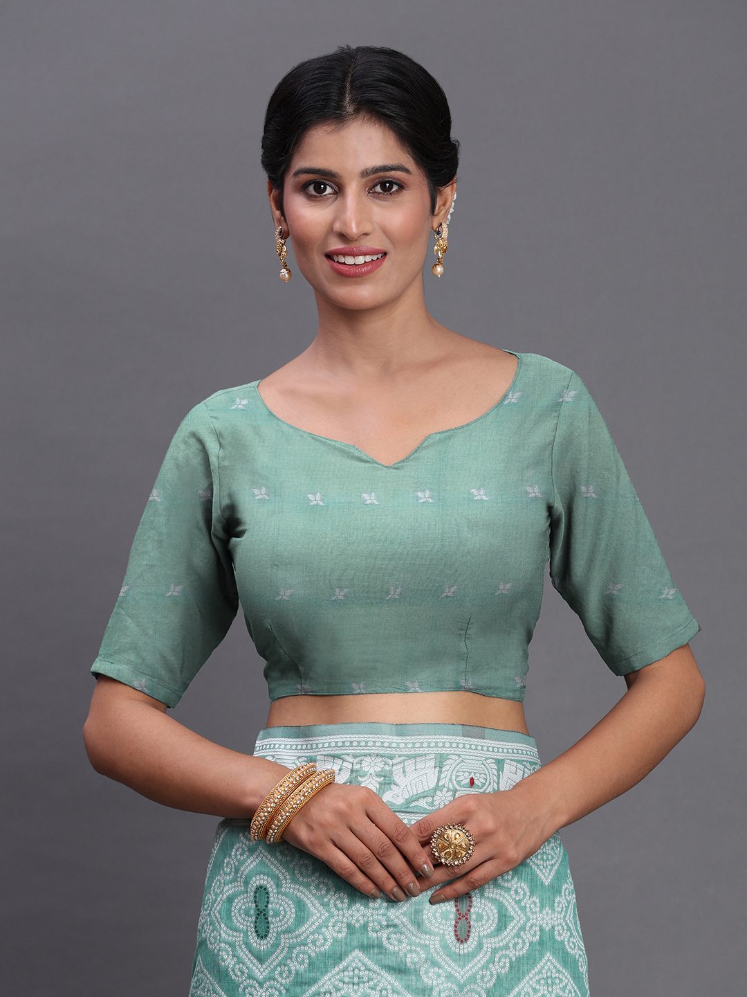 Sea Green Color Beautiful Woven Designer Linen Cotton Saree
