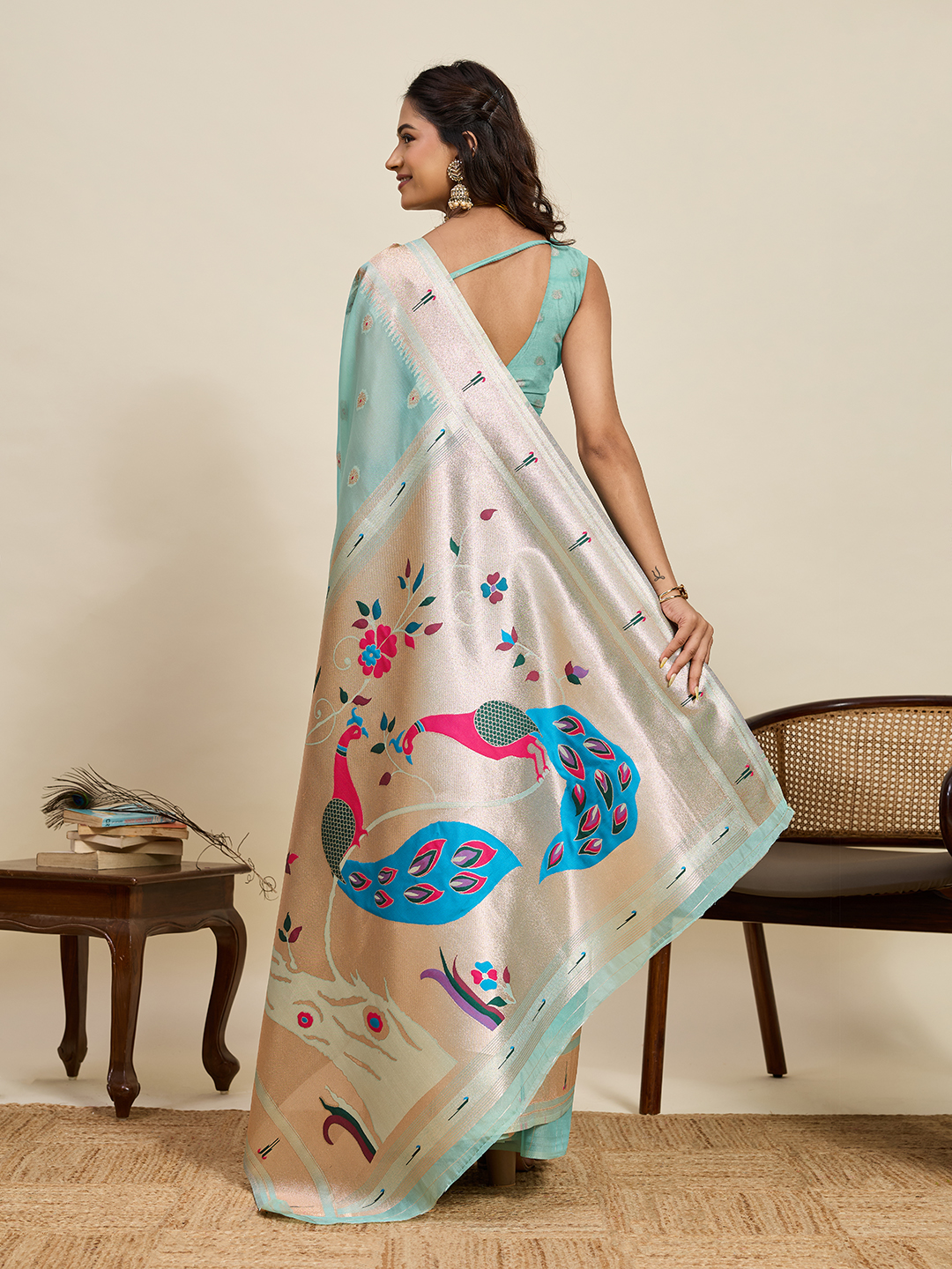 Garb This Party Wear Saree Paired With Blouse.This Saree And Blouse Are Cotton Silk Fabric With Woven Paithani Meenakari Designer. Buy This Pretty Saree Now.