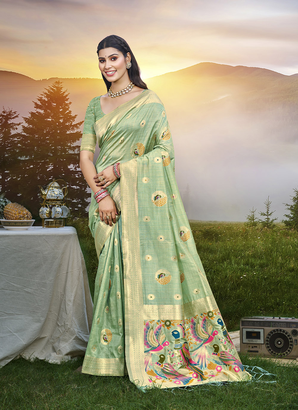 Sea Green Color Graceful Woven Meenakari Designer Saree On Assam Silk Fabric