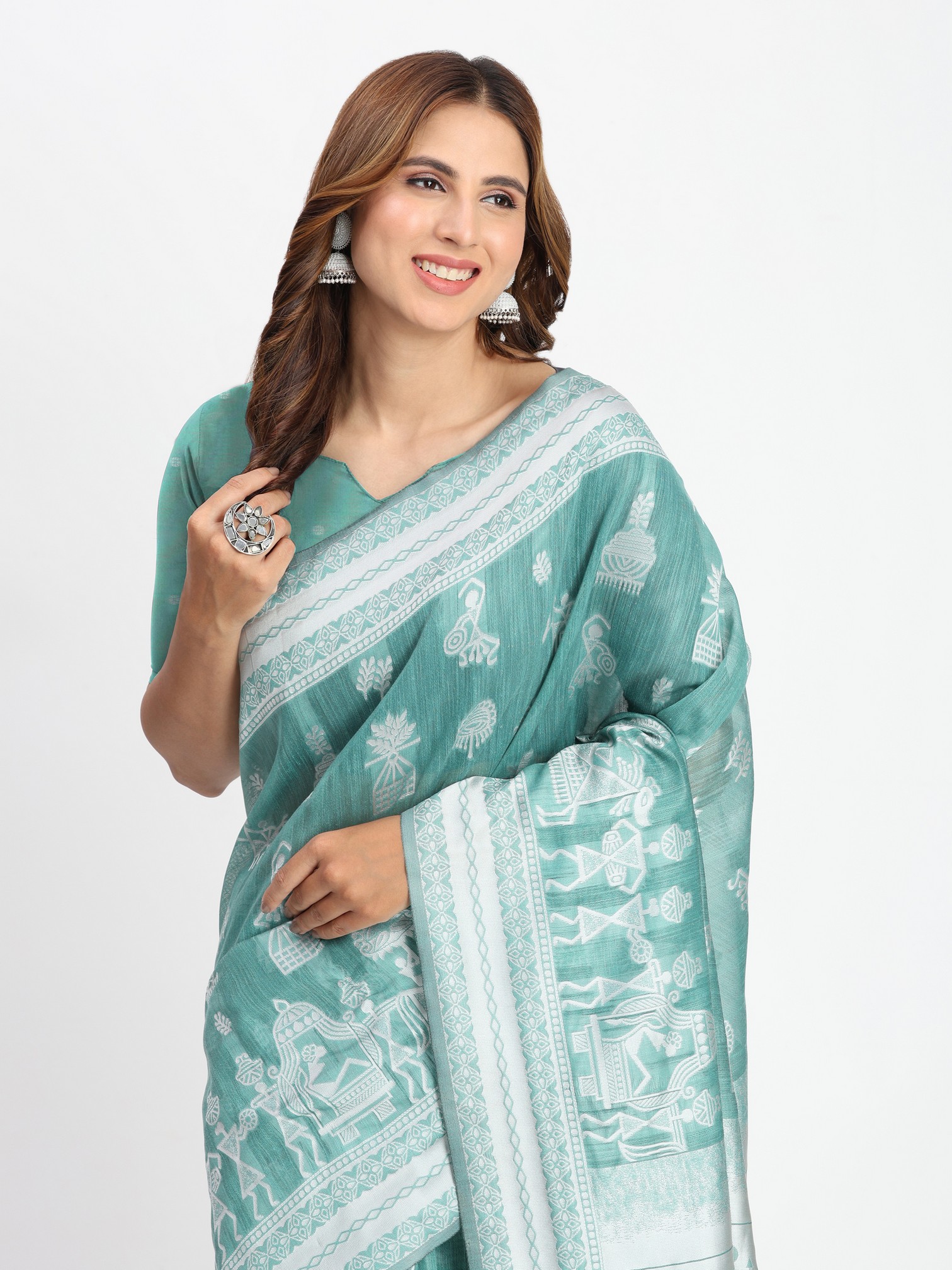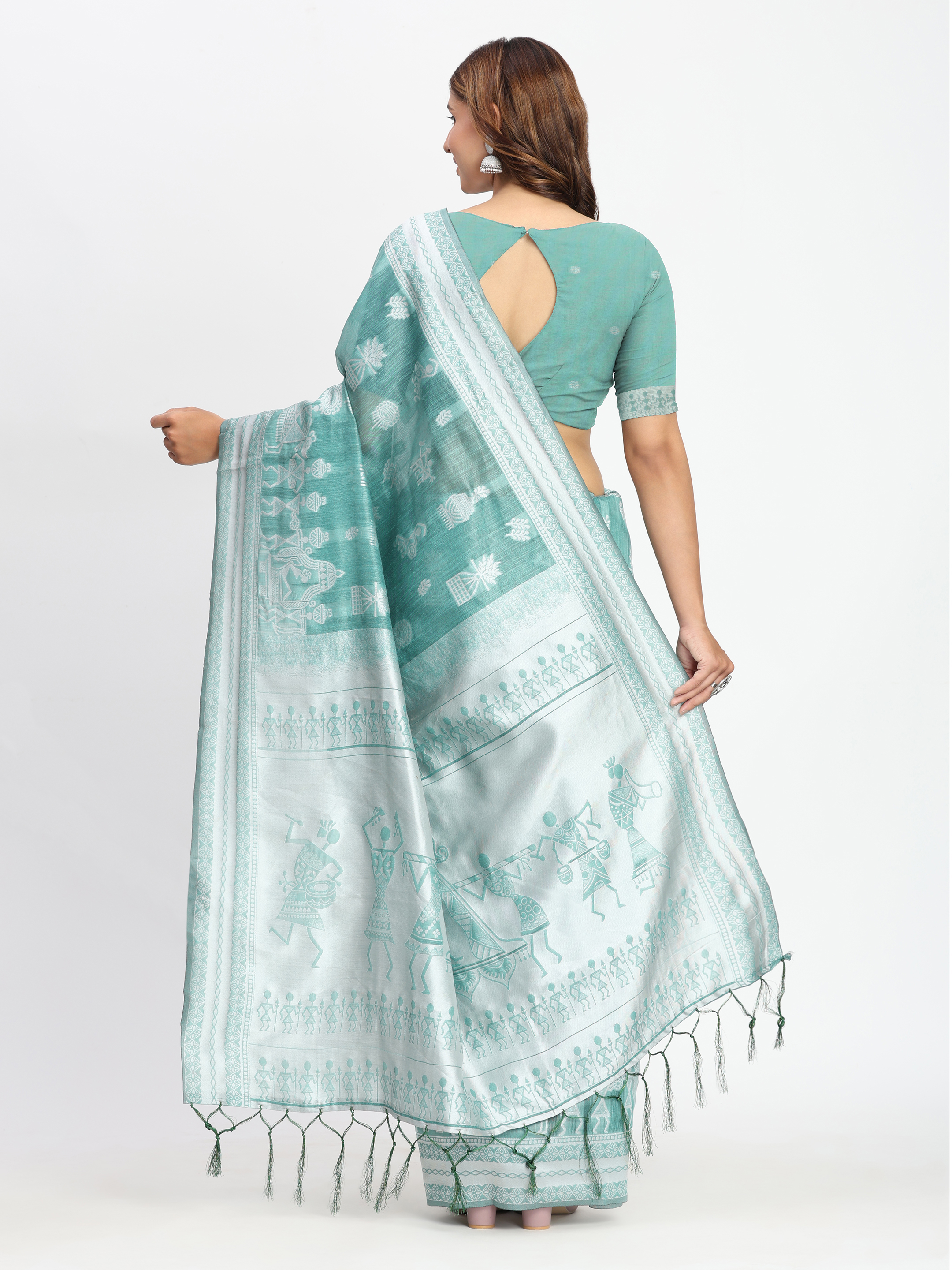 Sea Green Color Linen Cotton Woven Designer Graceful Ethnic Saree
