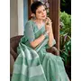 Sea Green Color Woven Designer Floral Embroidered Butta Festive Saree