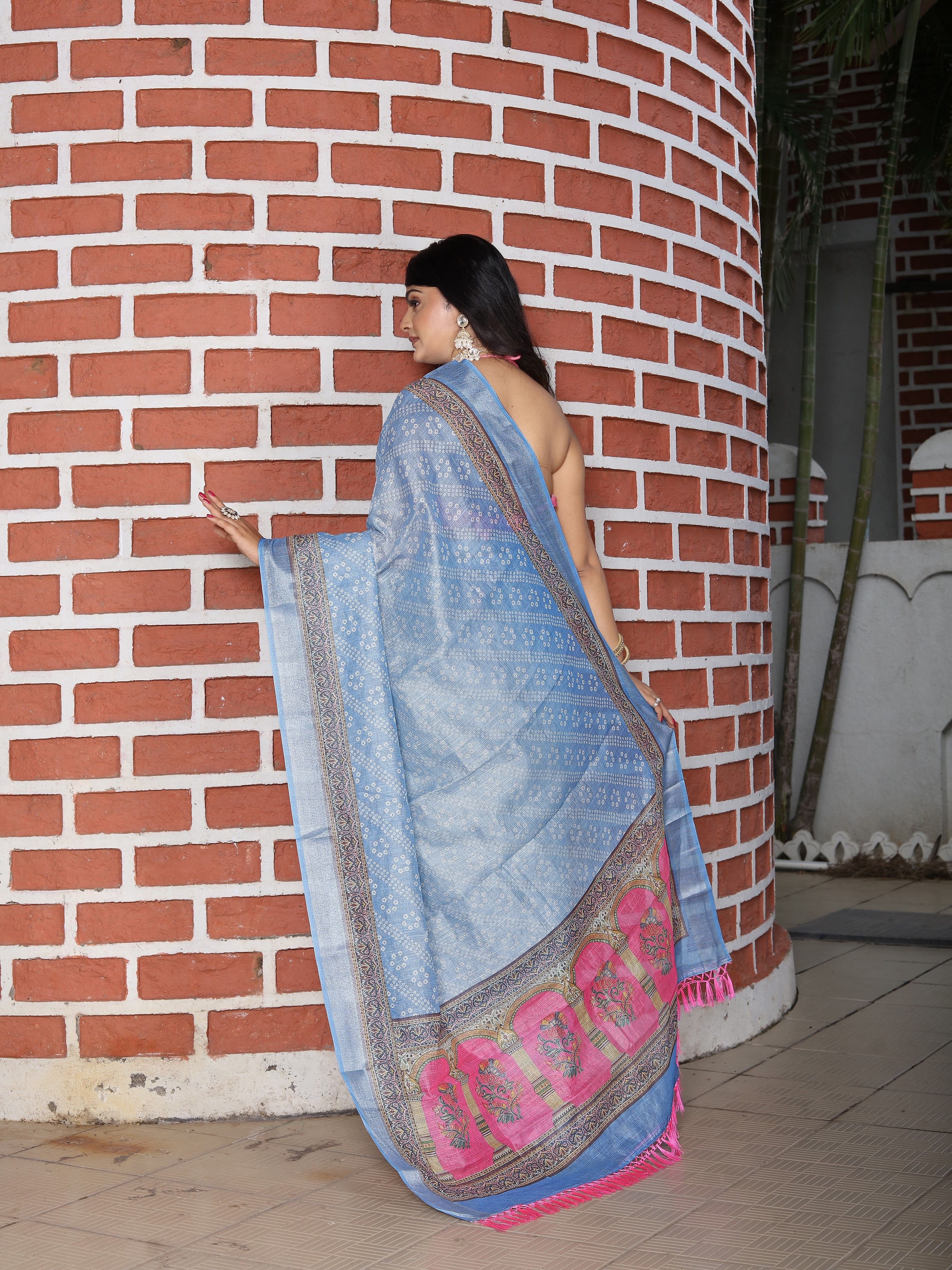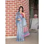 Sky Blue Color Cotton Shimmer Fabric Designer Printed Ethnic Girlie Saree