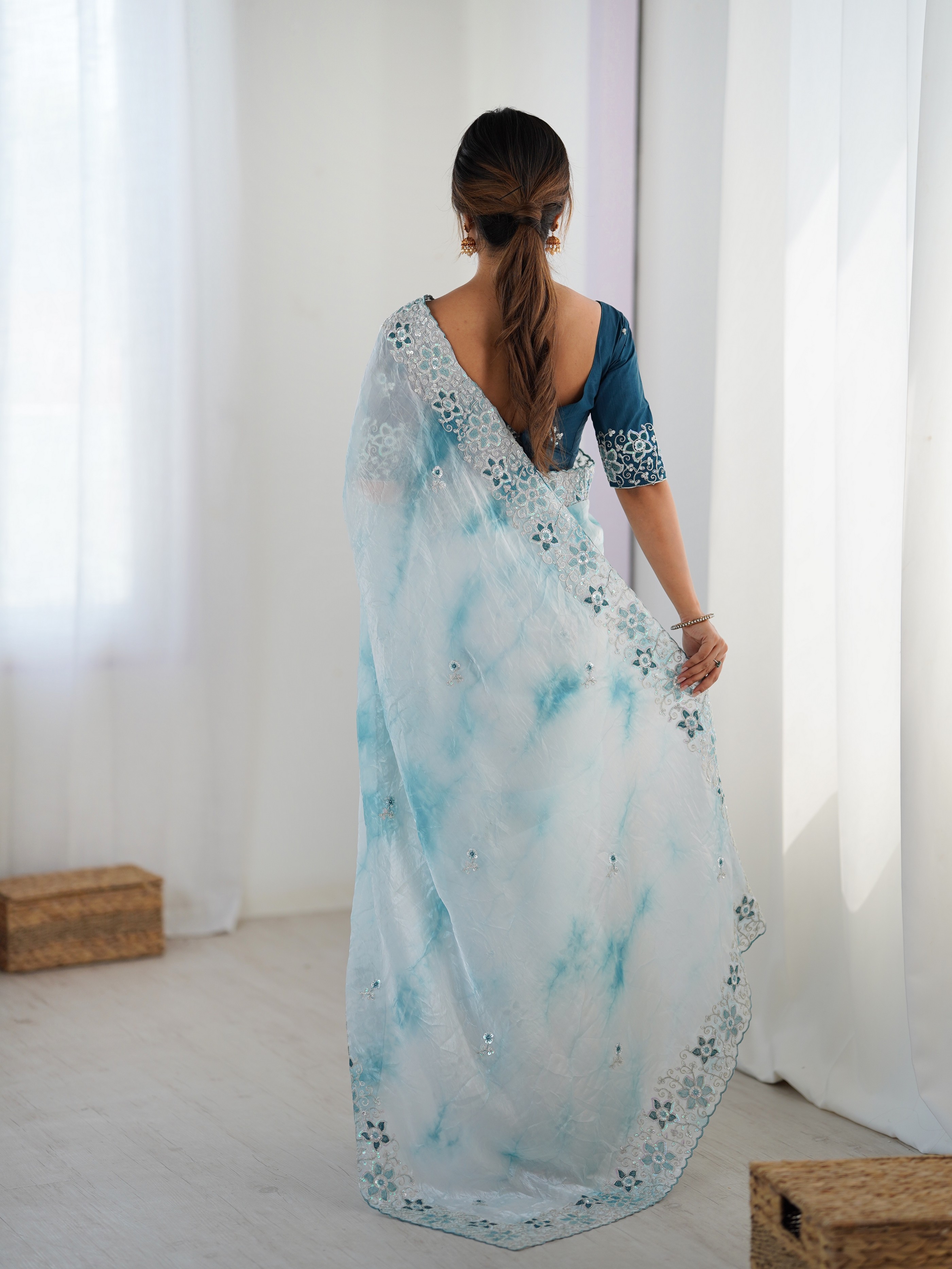 Sky Blue color Fendy Fabric Stylish Girlie Saree