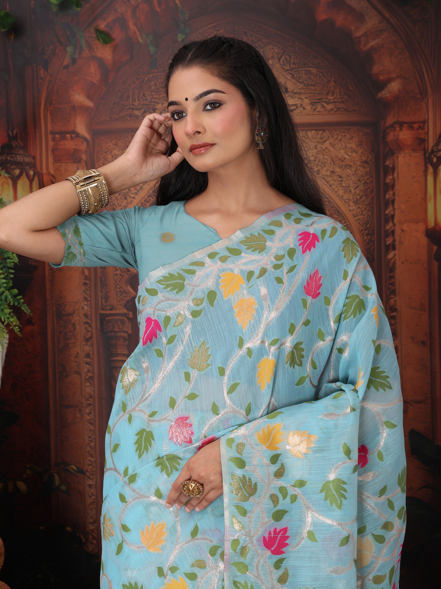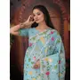Sky Blue Color Linen Cotton Fabric Woven Designer Partywear Saree