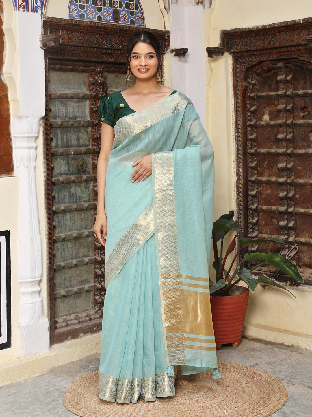Sky Blue Color Rich Ethnic Cotton Based Saree with Rich Woven Designer Looks