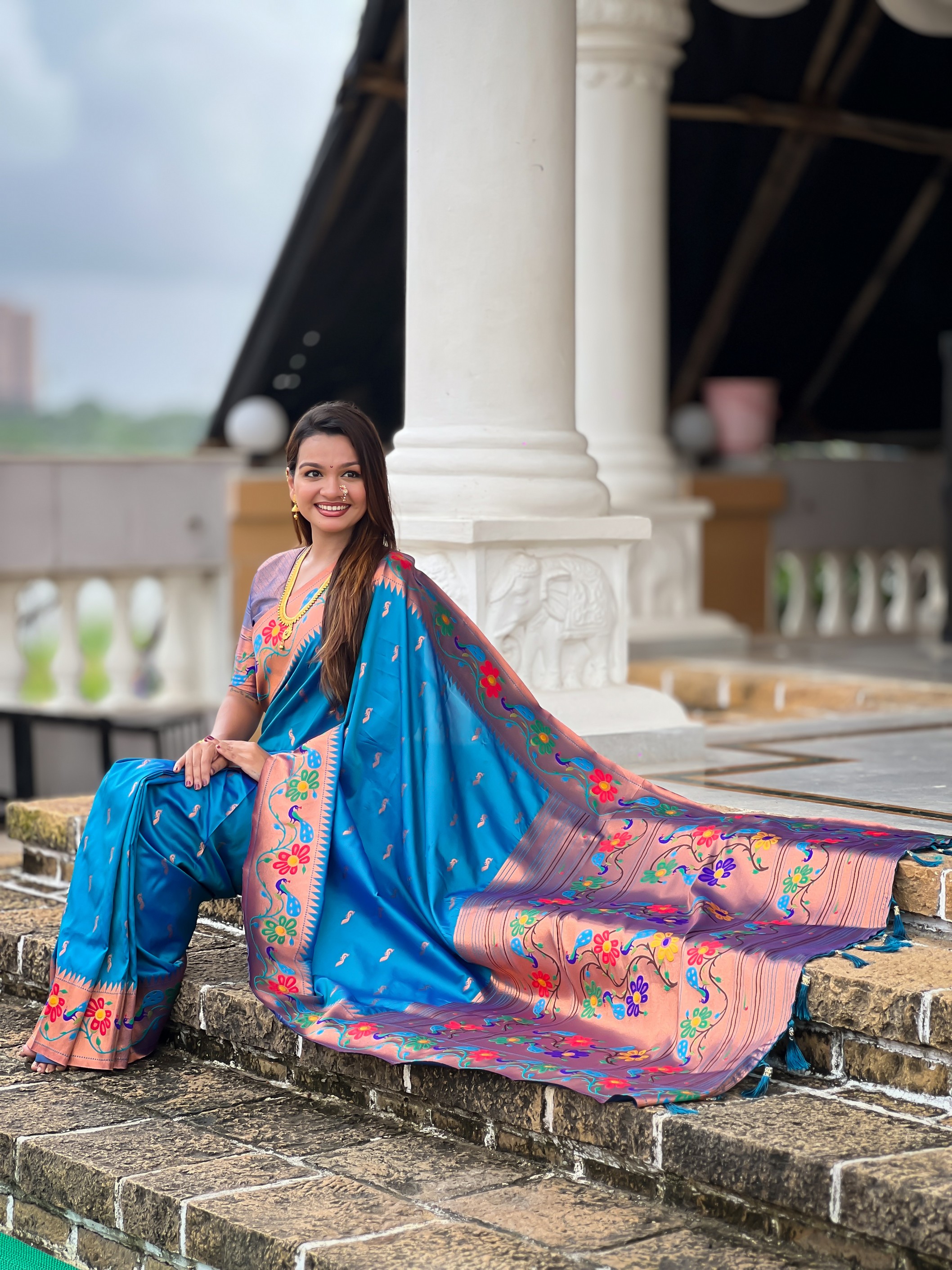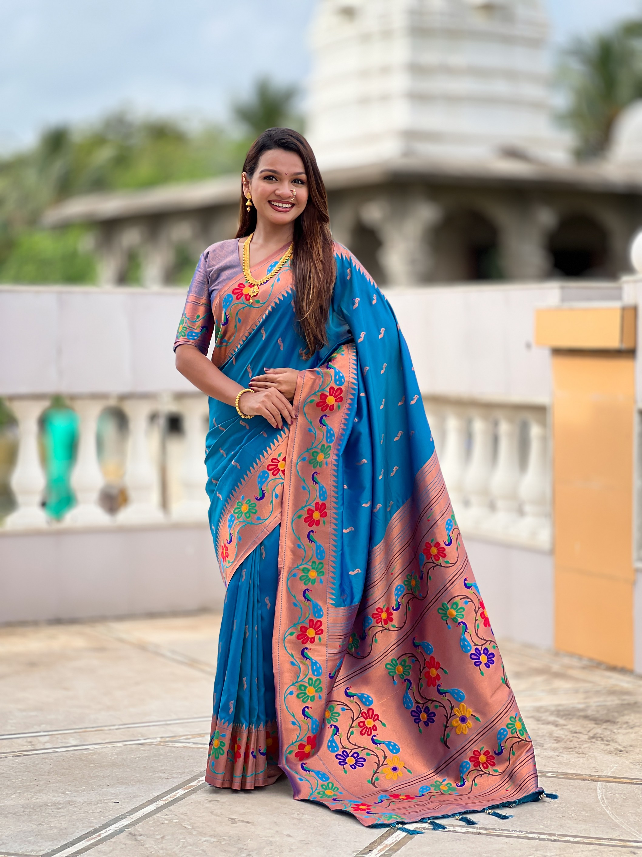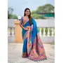 Sky Blue Color Woven Meenakari Jacquard Designer Paithani Silk Fabric Ethnic Saree
