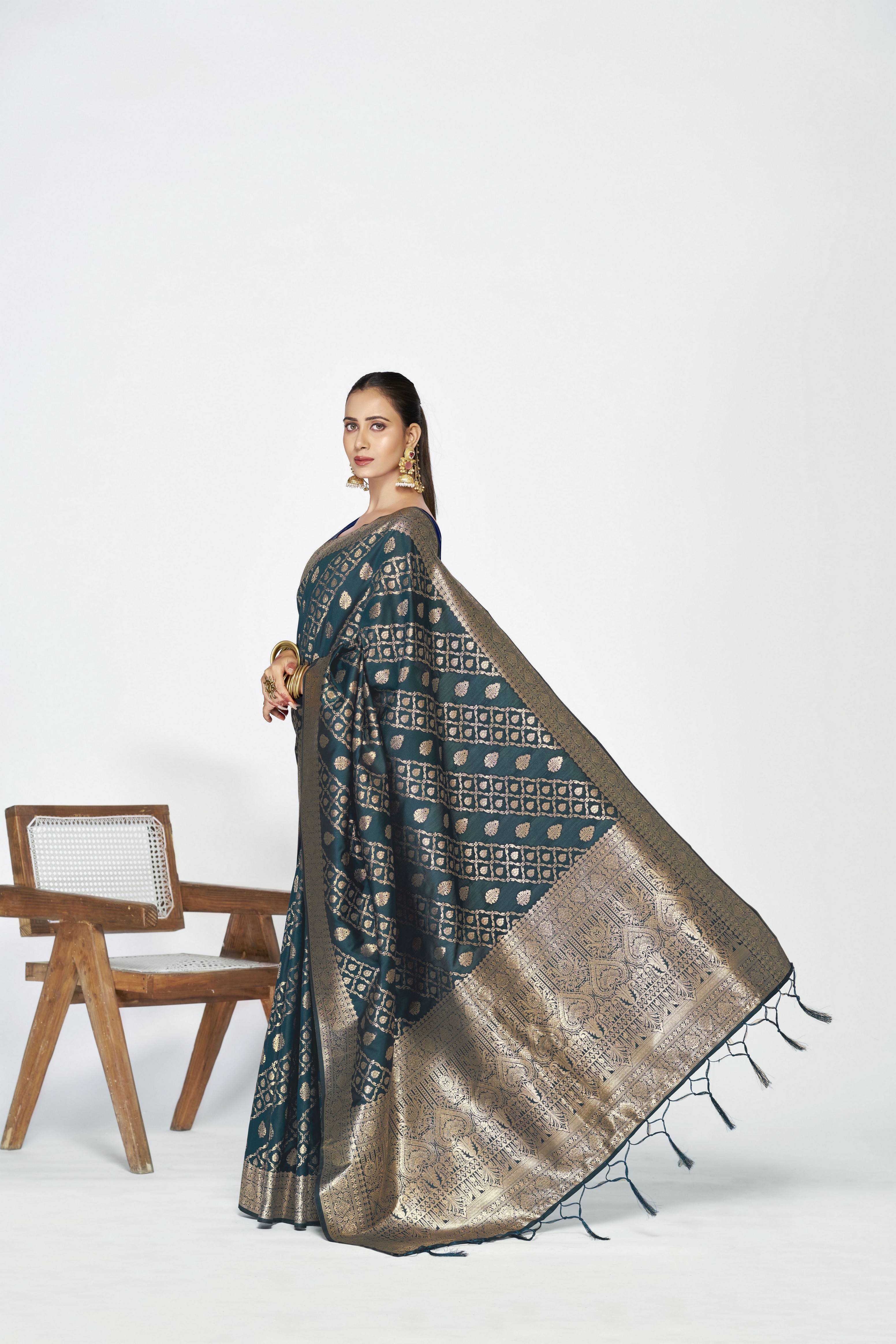 Teal Blue color Banarasi Silk fabric Woven Zari Designer Saree