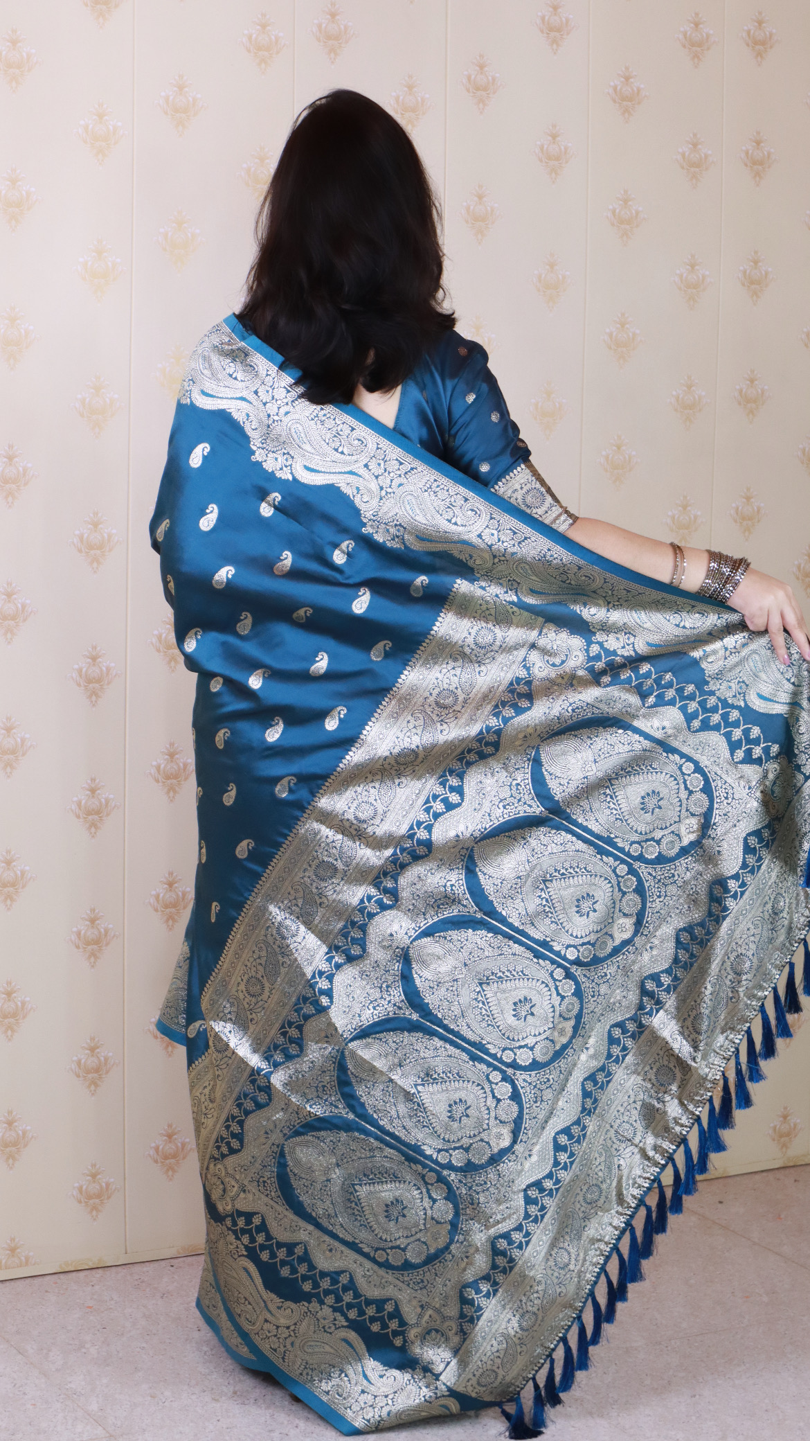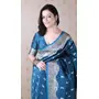 Teal Blue Color Banarasi Silk Saree Woven Silver Jari Designer Ceremonial Partywear Saree
