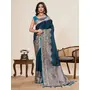 Teal Color Satin Silk fabric Wevon Jari Designer Ethnic Partywear Saree