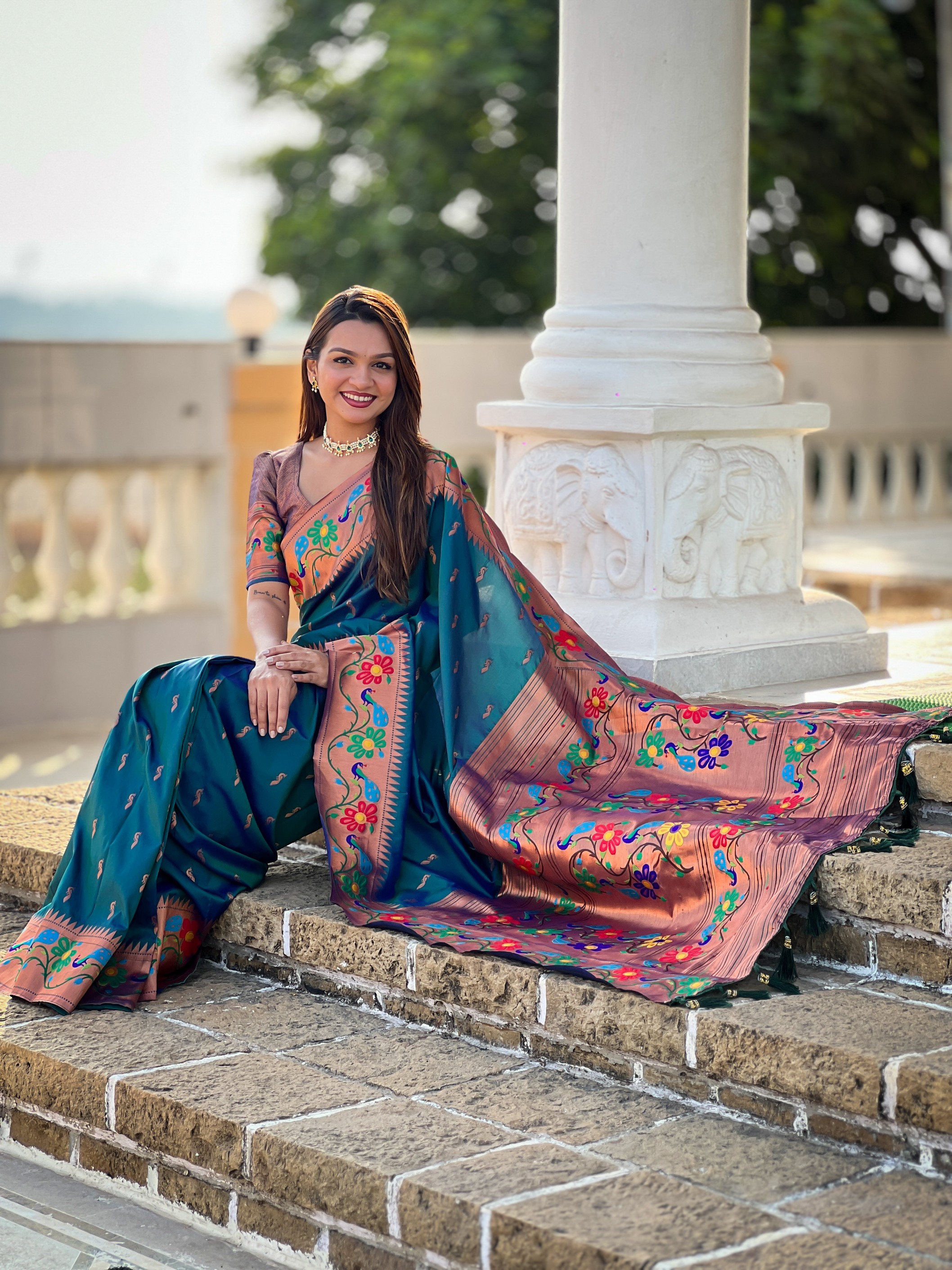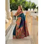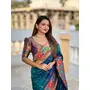 Teal Color Woven Meenakari Jacquard Designer Paithani Silk Fabric Ethnic Saree