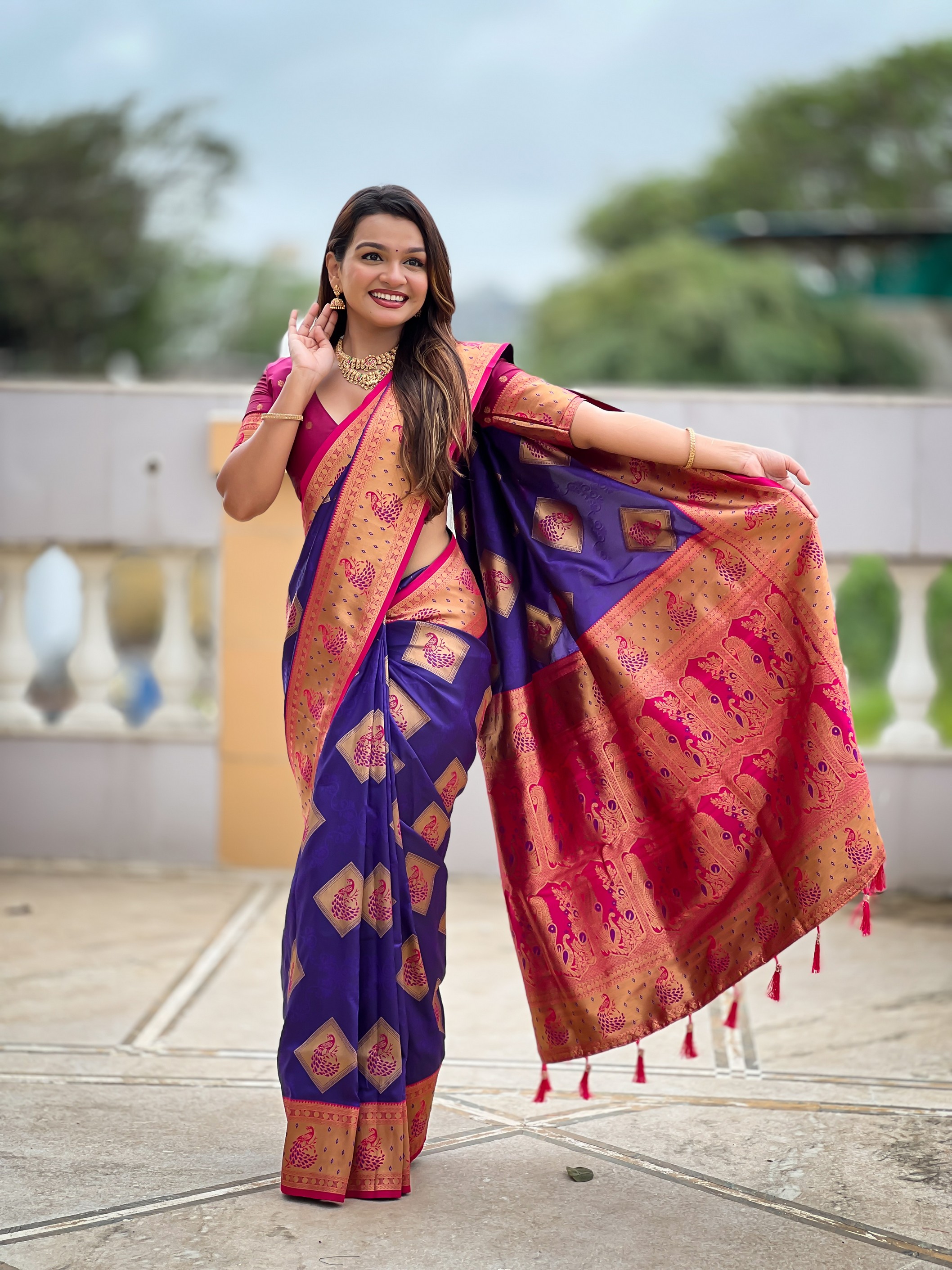 Violet Color Beautiful Woven Designer Meenakari Banarasi Silk Saree