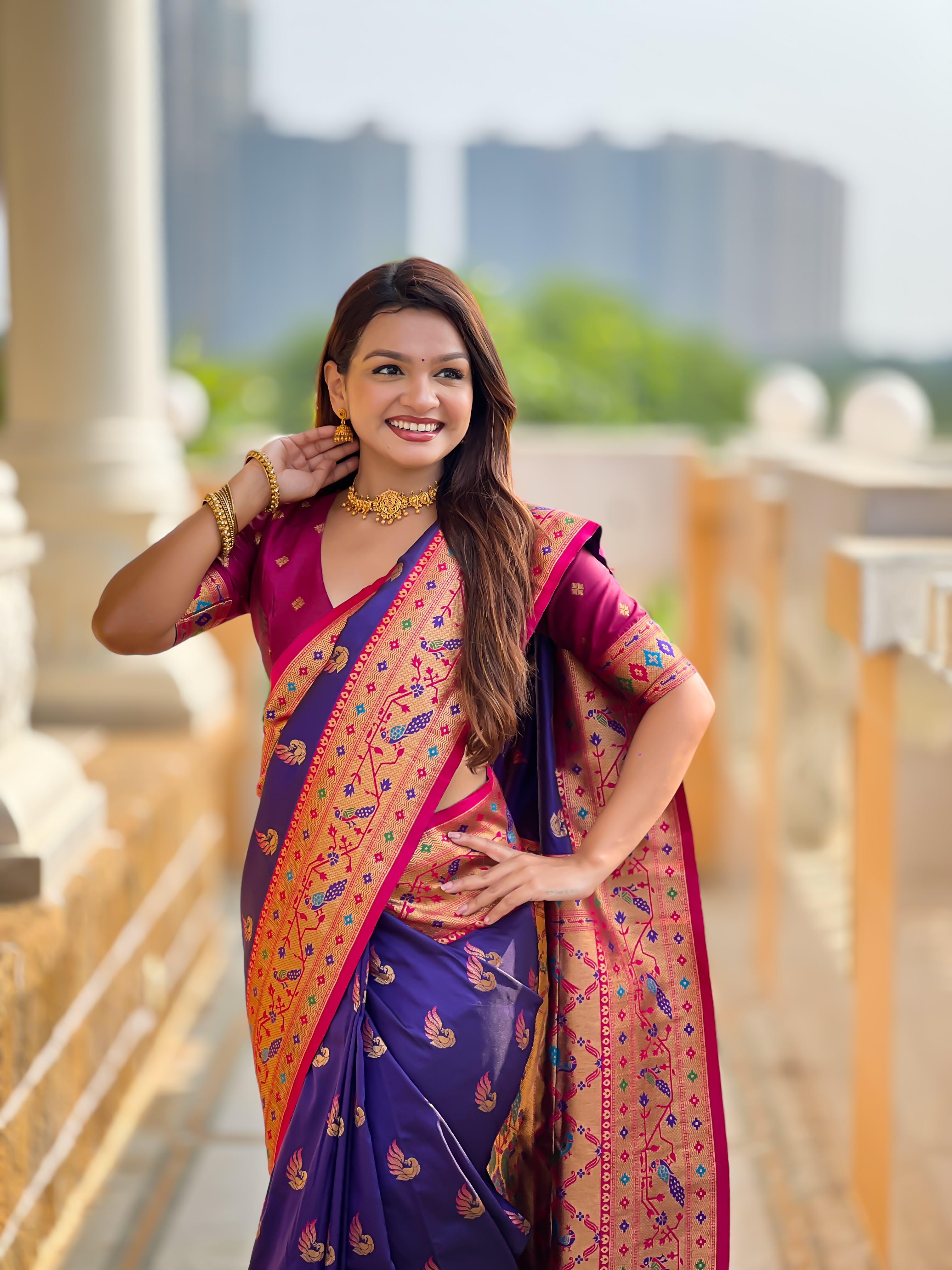 Violet Color Paithani Silk Woven Meenakari Jacquard Designer Saree